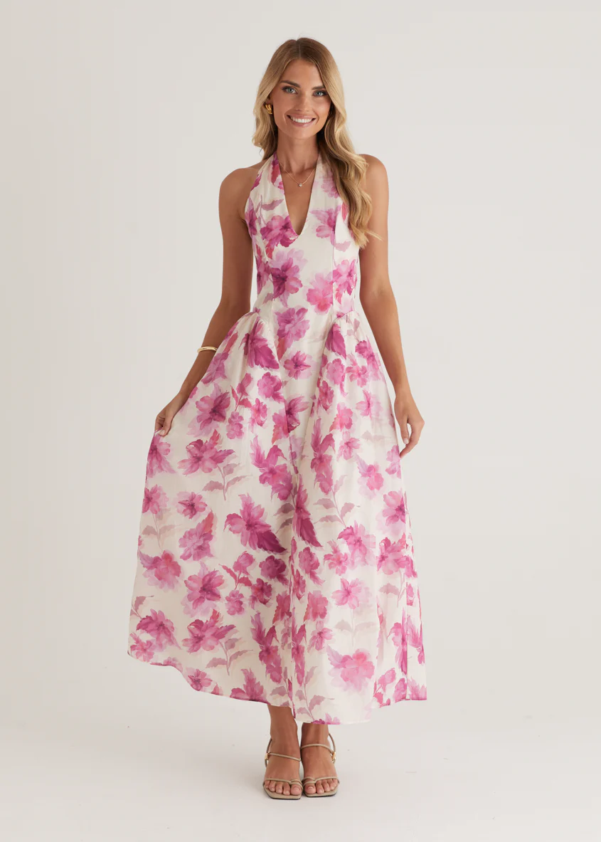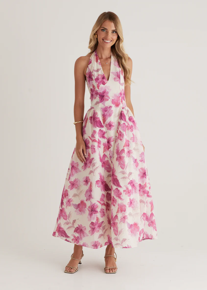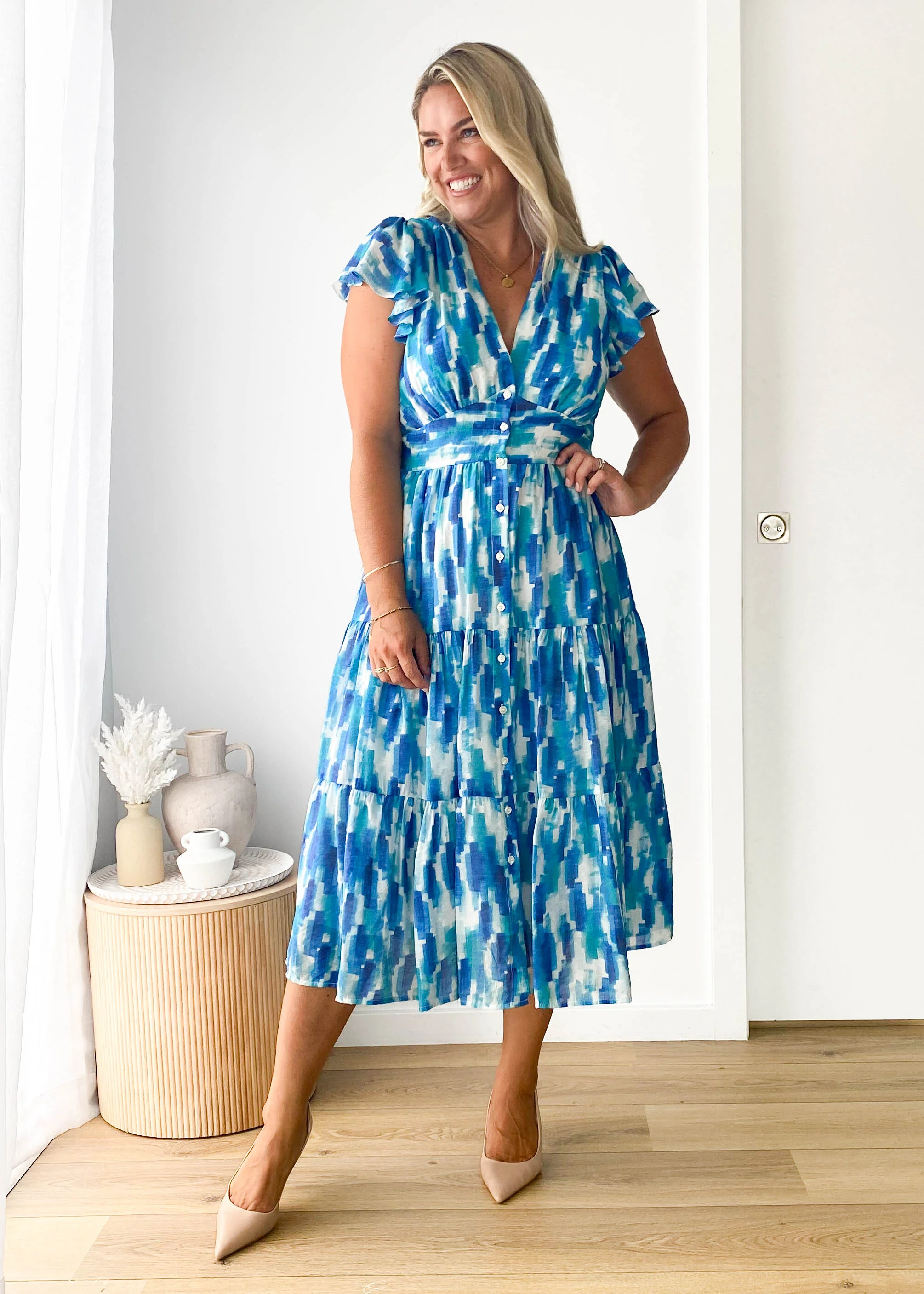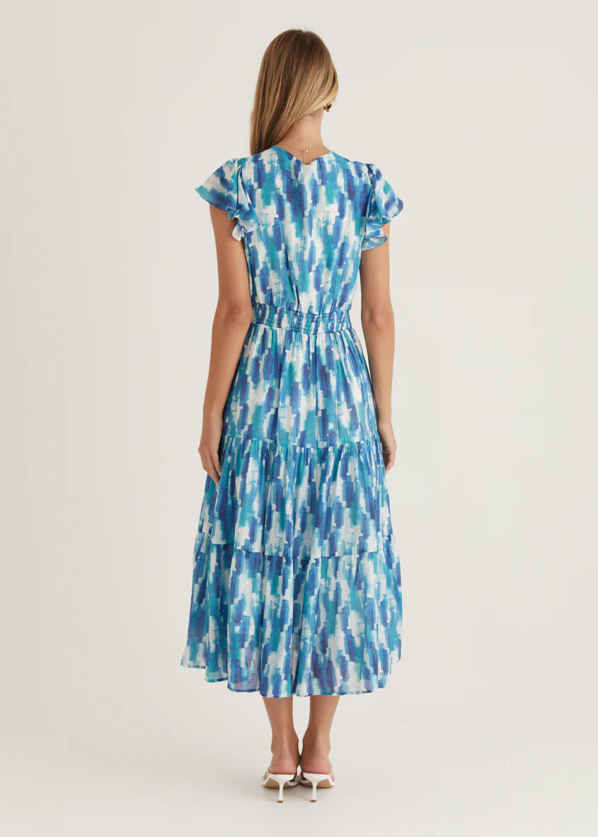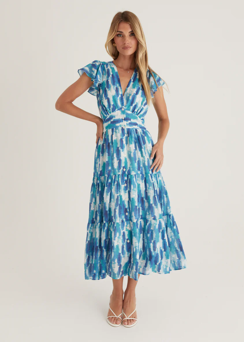 Flirtini One Shoulder Maxi Dress - Blue Swirl