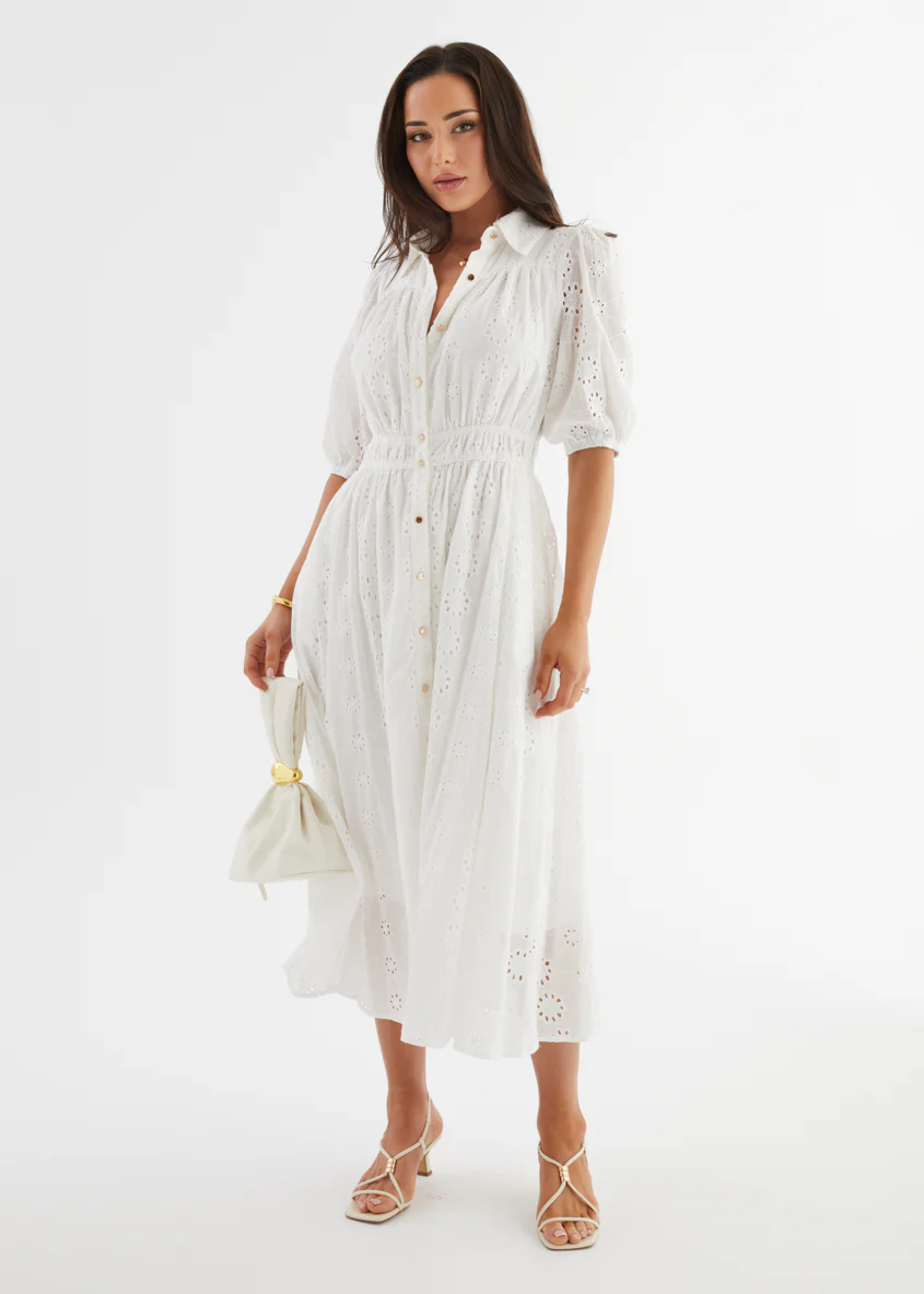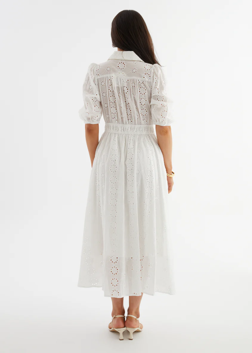 Eryn Midi Dress - White Anglaise