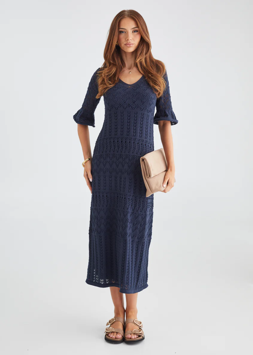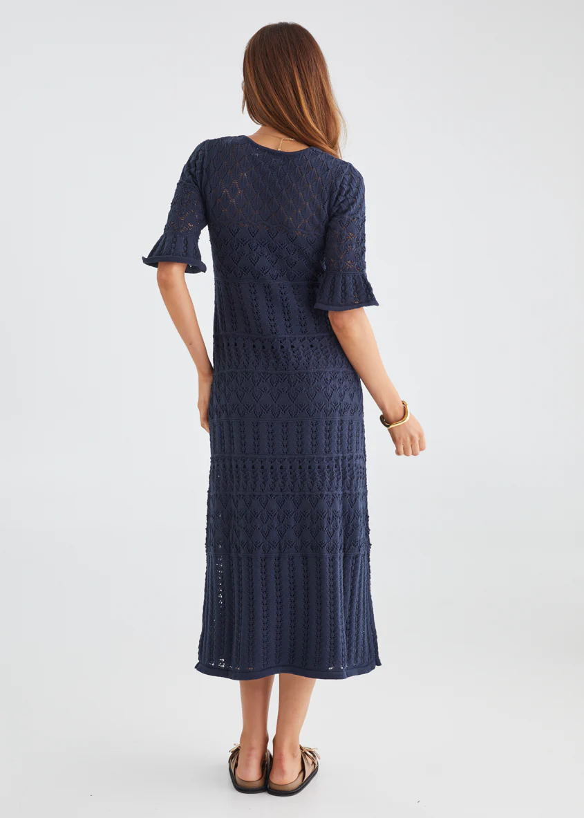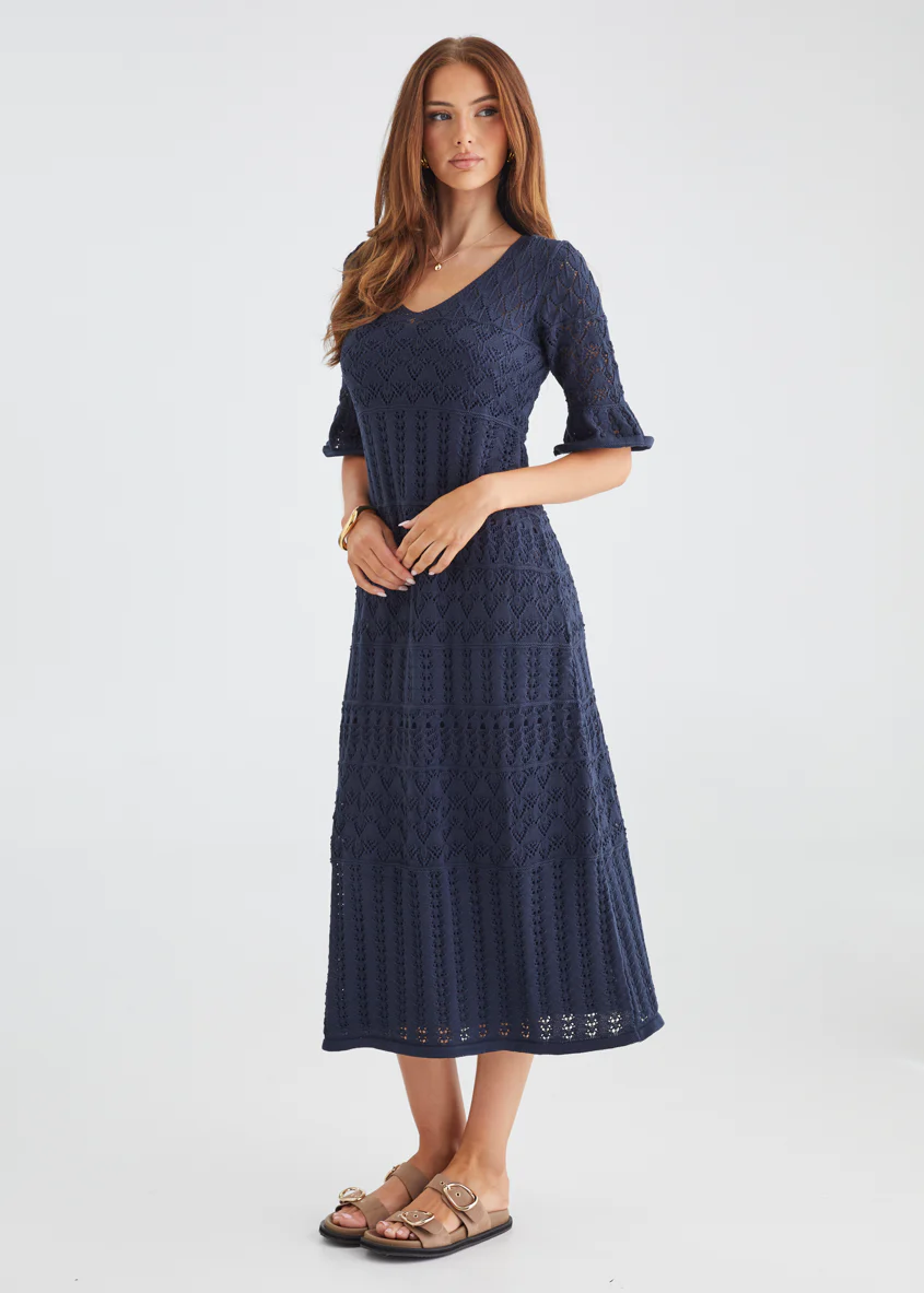 Estrela Crochet Midi Dress - Navy