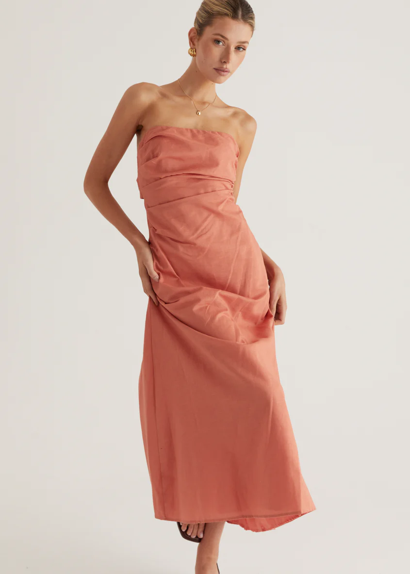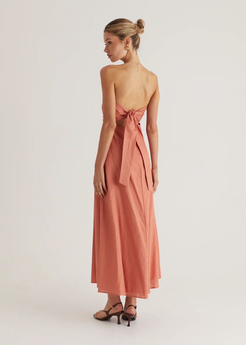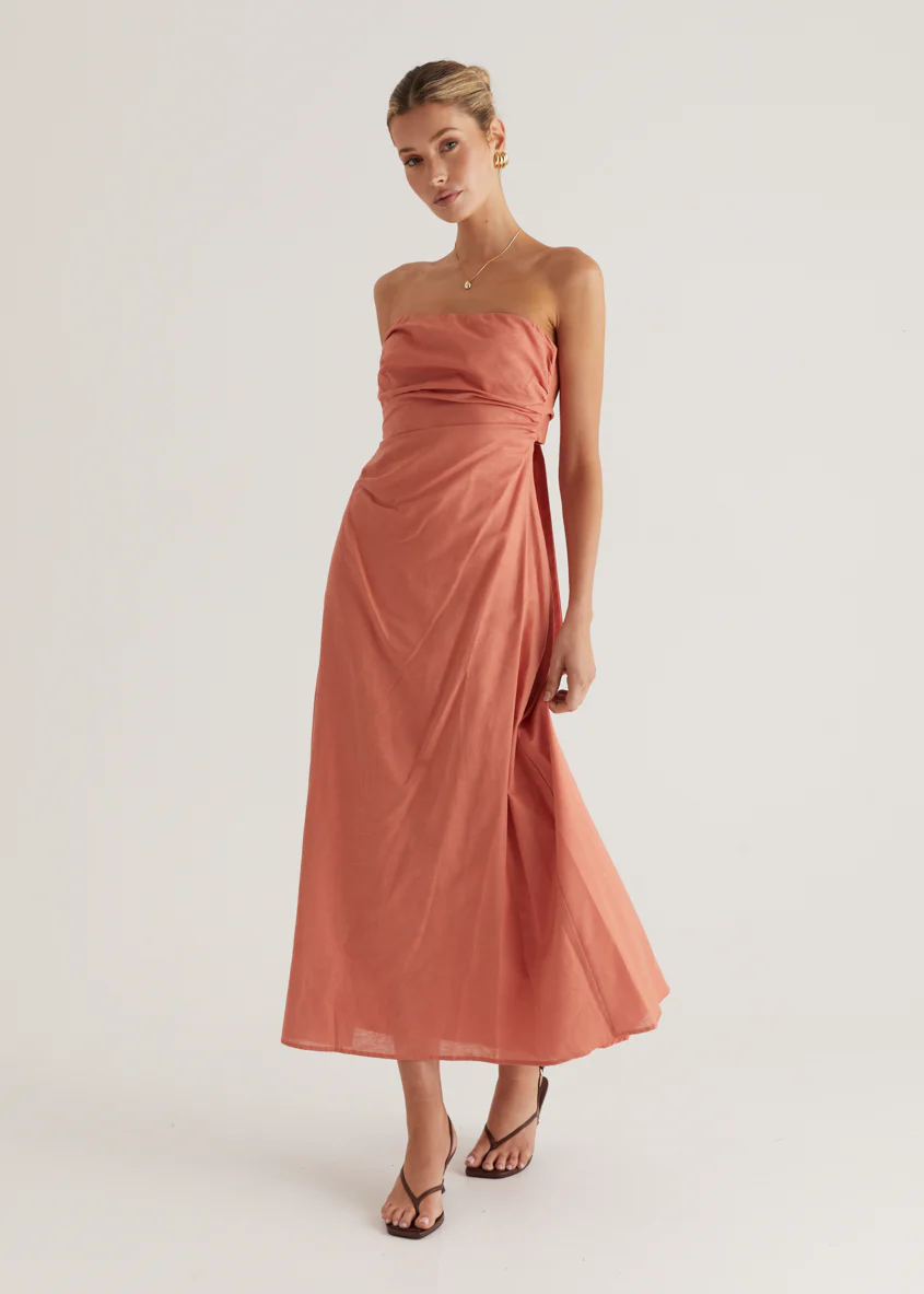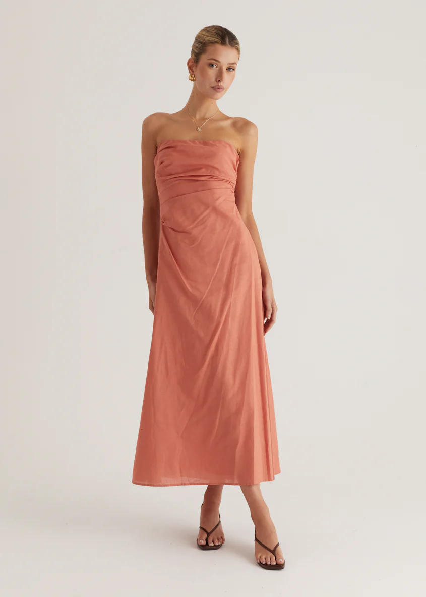 Emily Strapless Maxi Dress - Coral