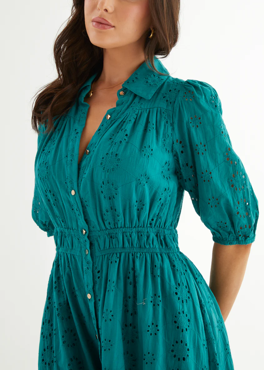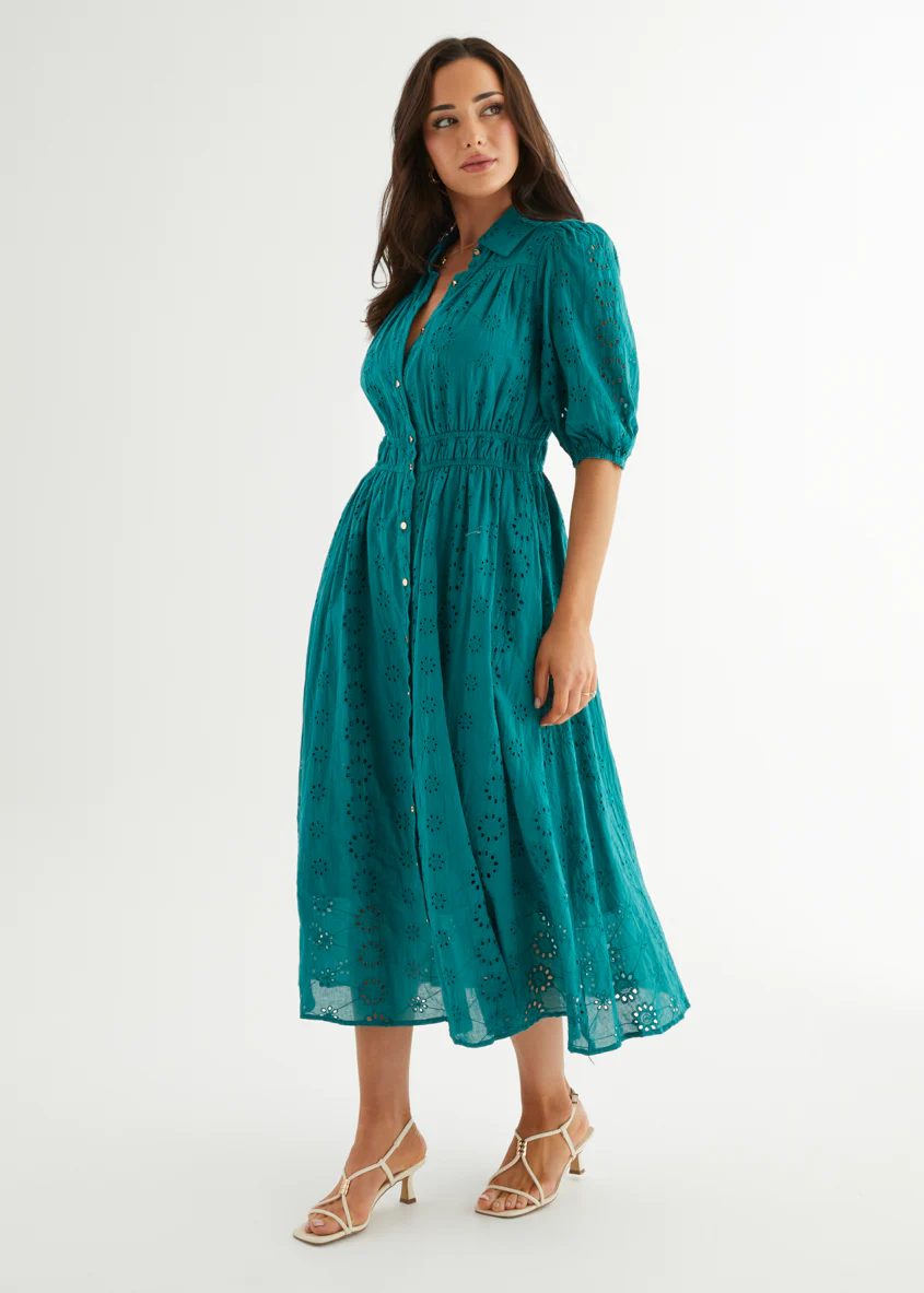 Eryn Midi Dress - Teal Anglaise