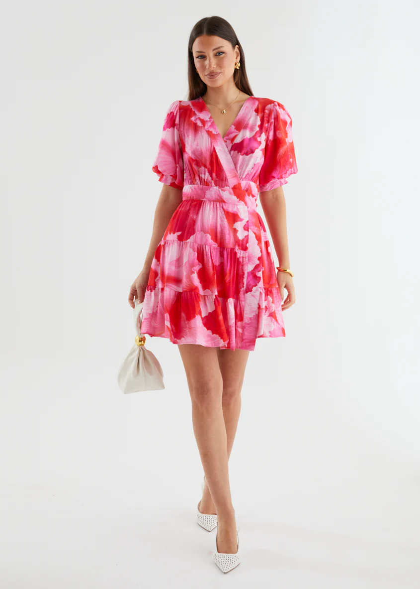 Emely Wrap Dress - Strawberry Abstract