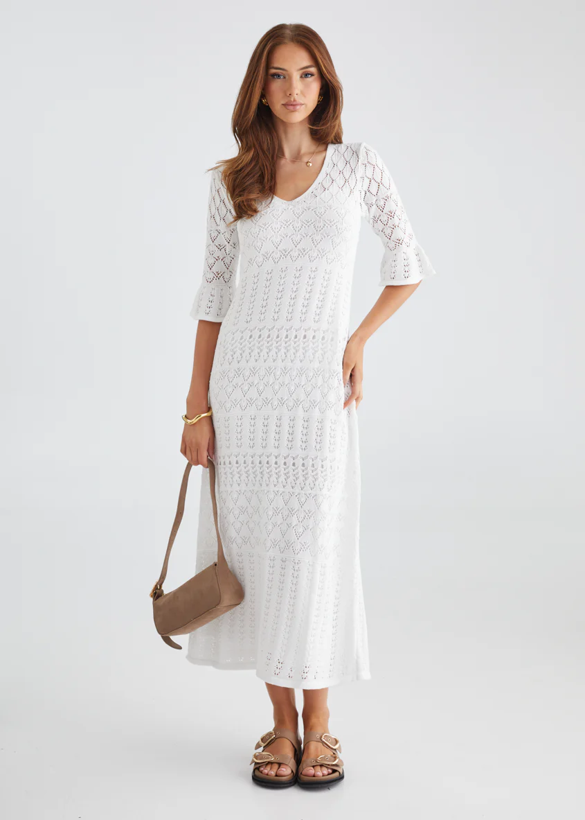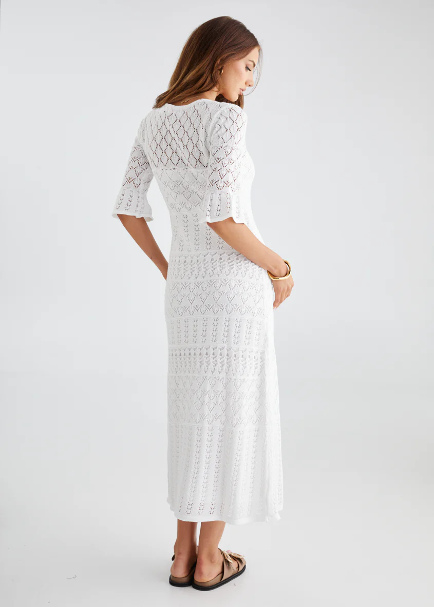 Estrela Crochet Midi Dress - Off White