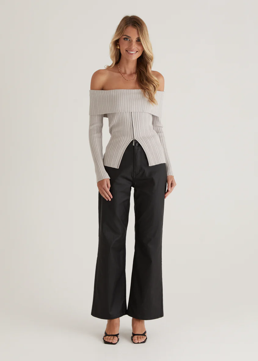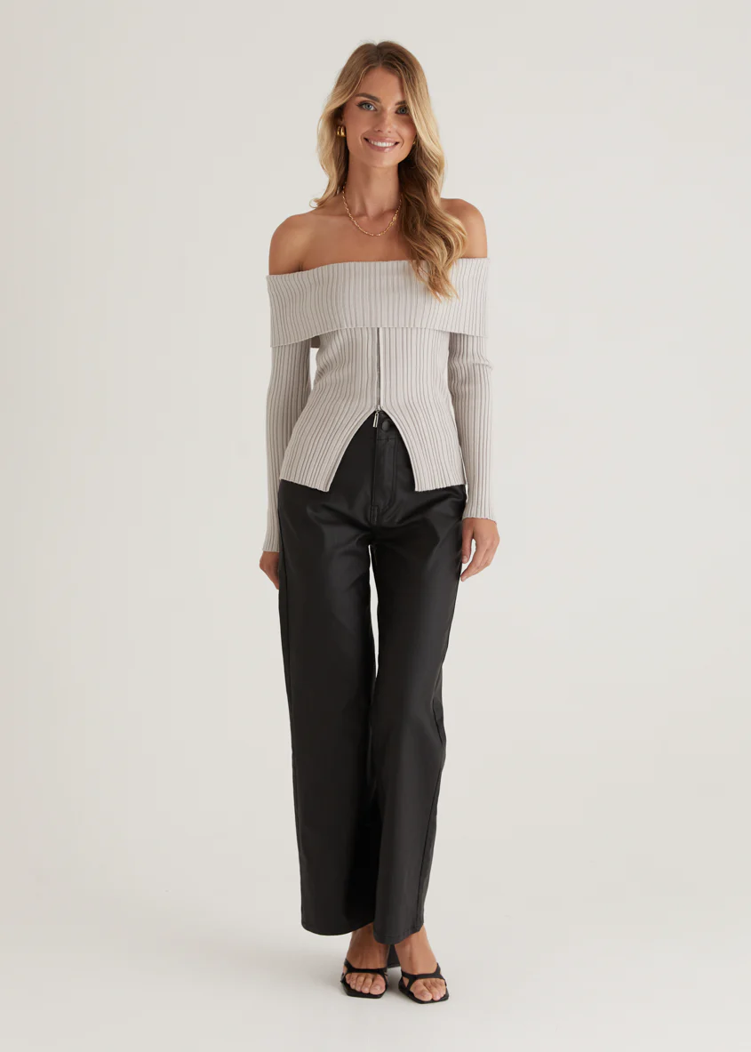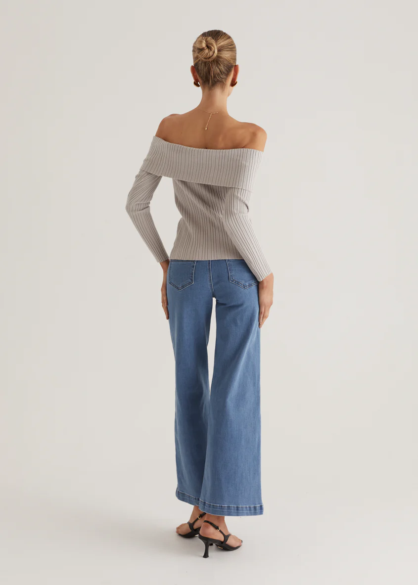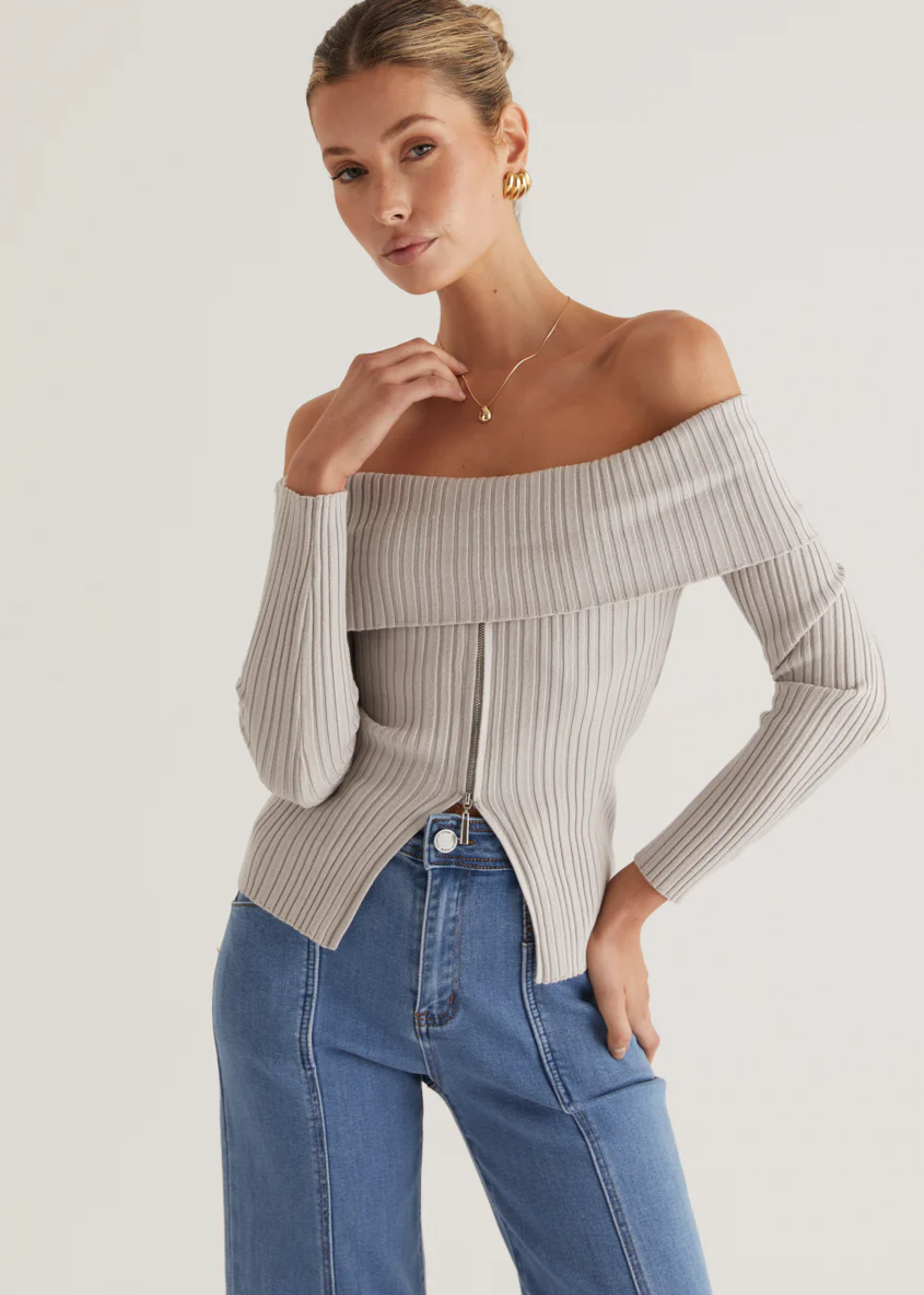 Ember Off Shoulder Knit Top - Stone