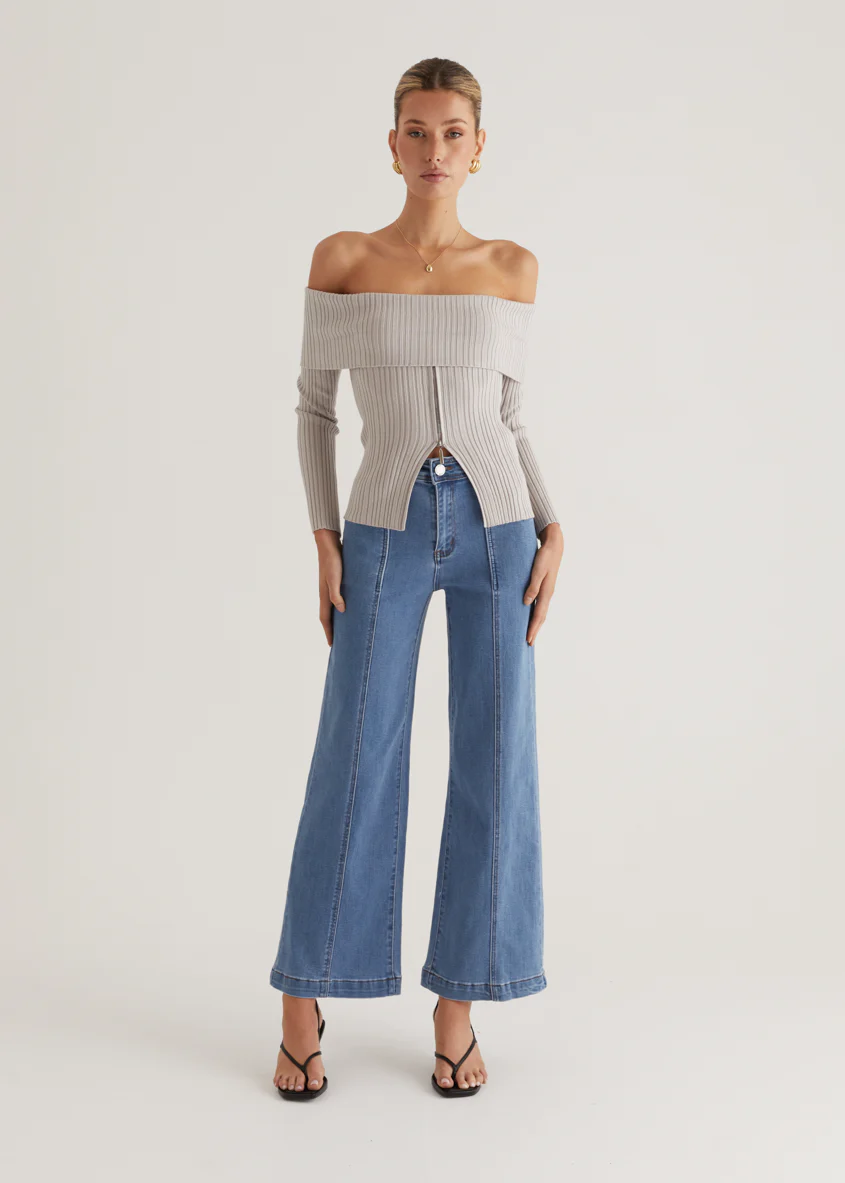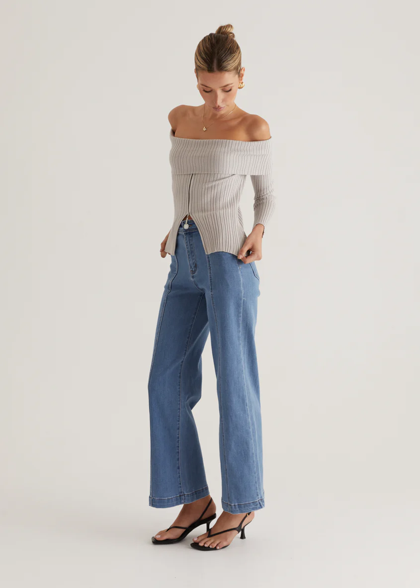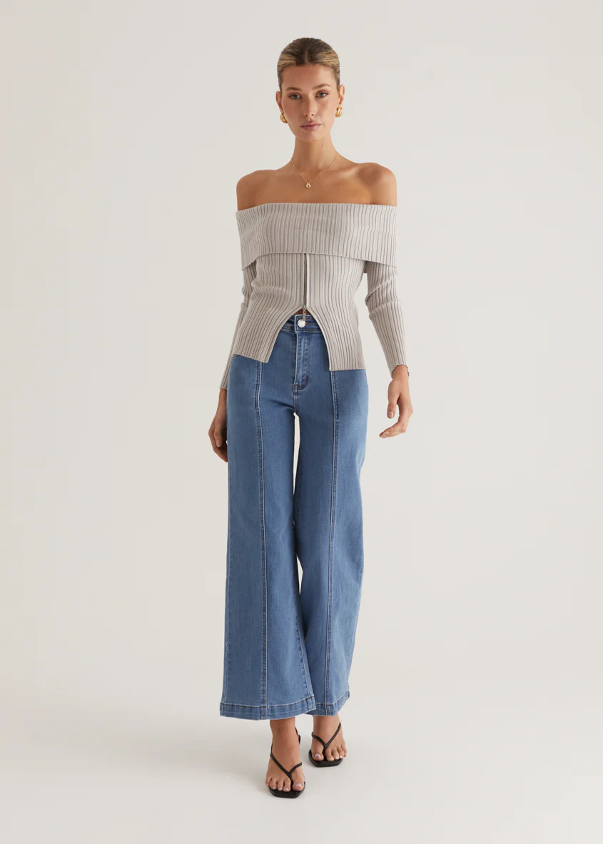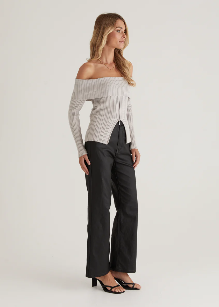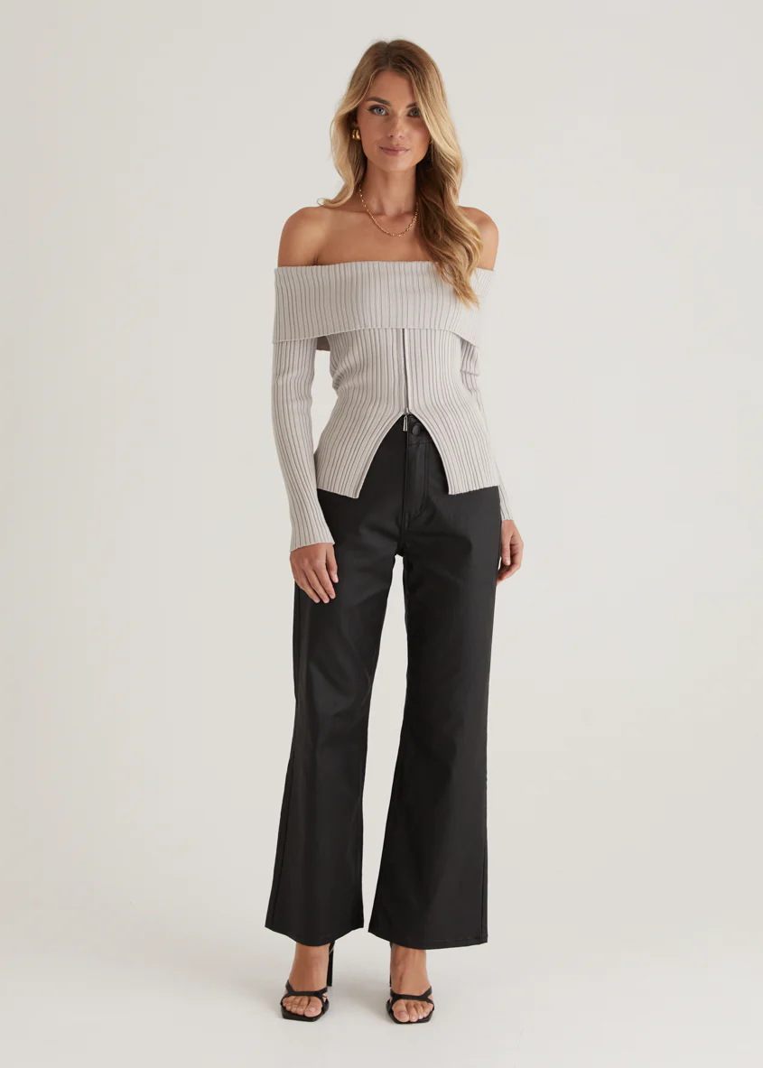 Ember Off Shoulder Knit Top - Stone