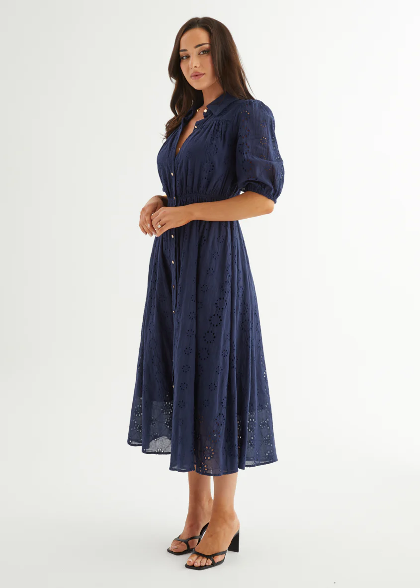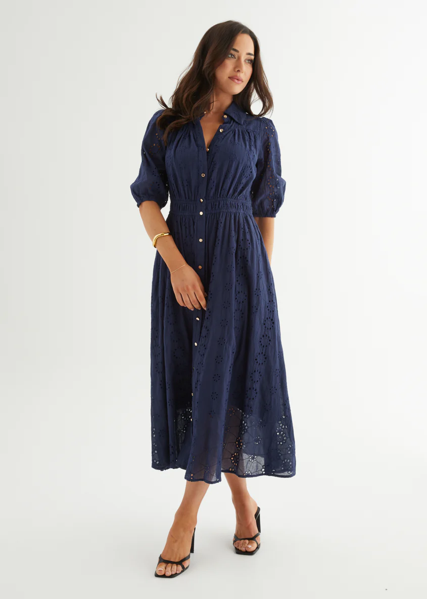 Eryn Midi Dress - Navy Anglaise