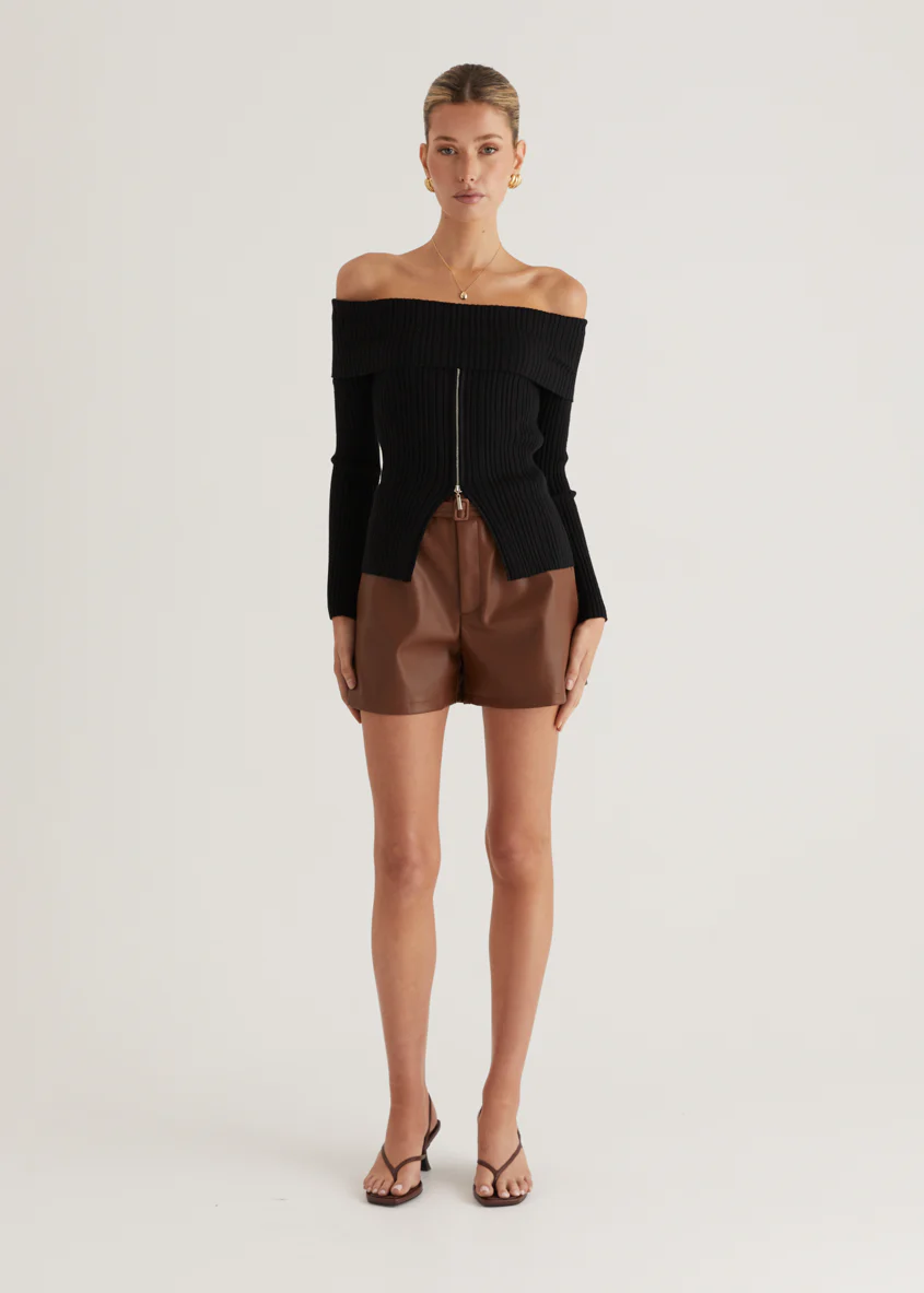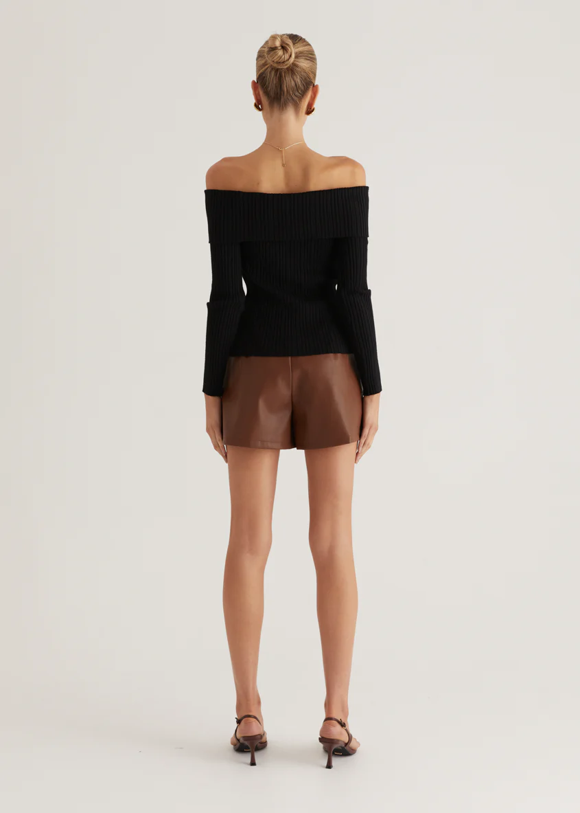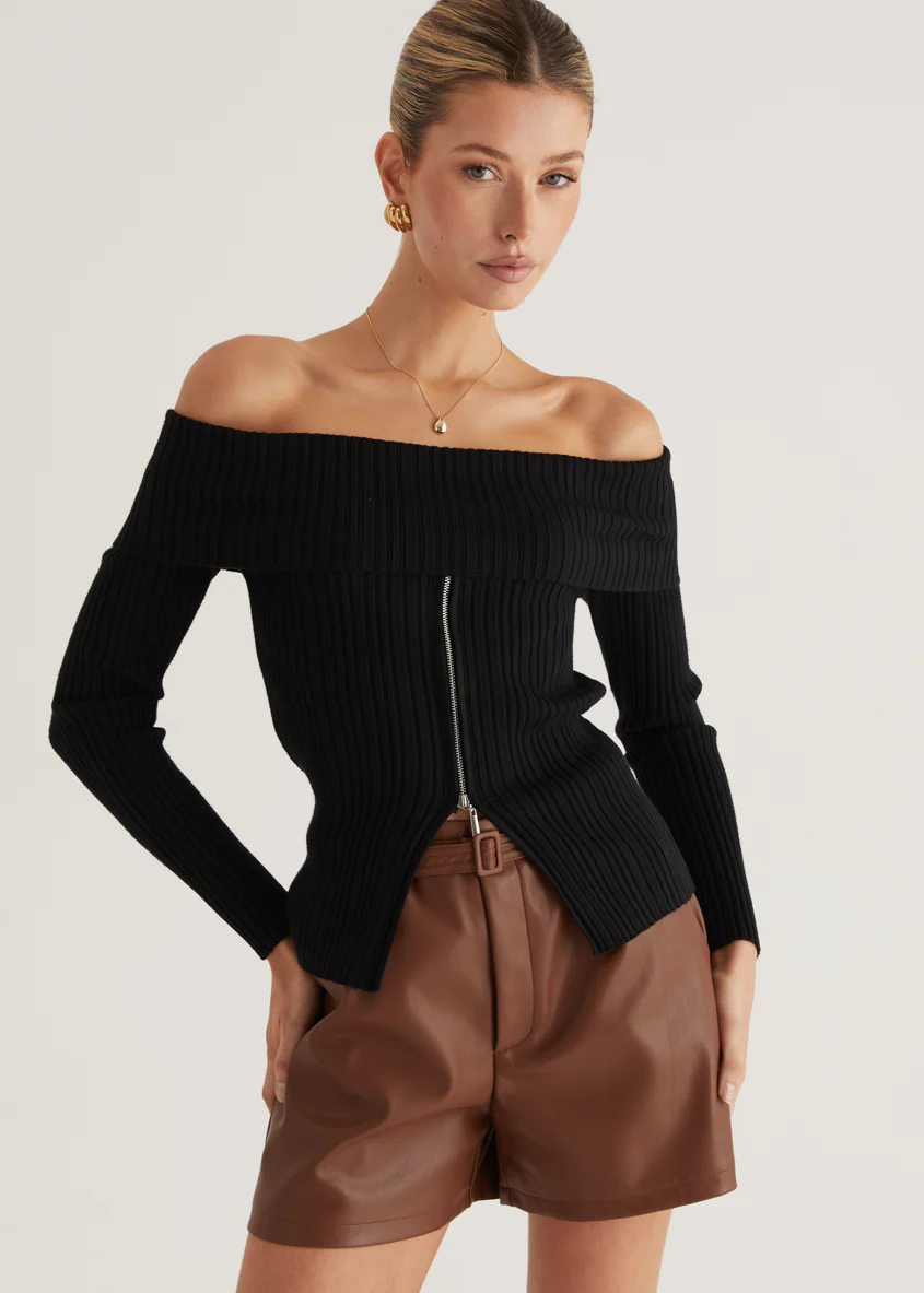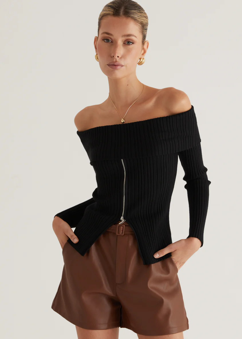 Ember Off Shoulder Knit Top - Black