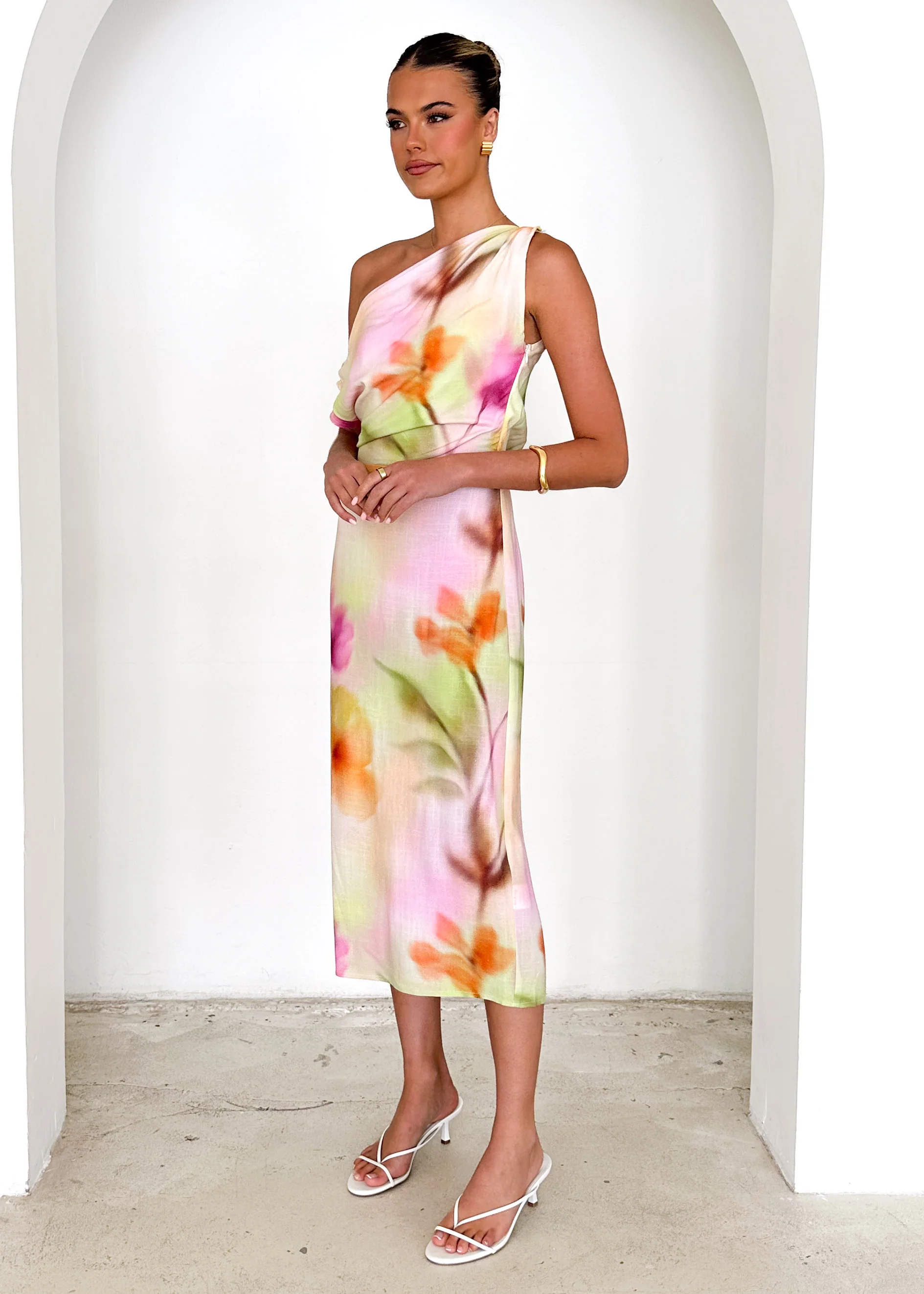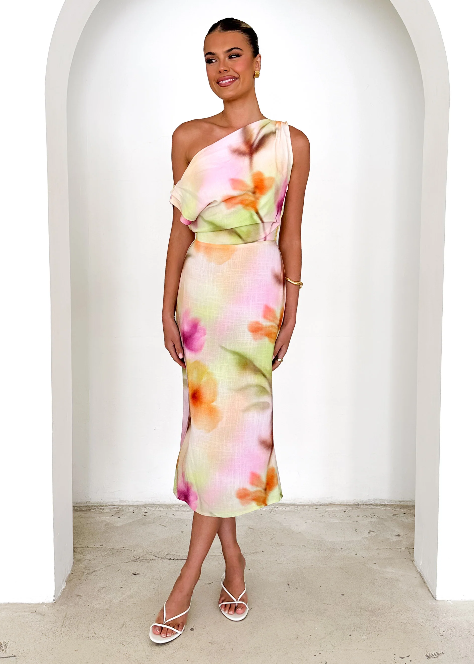Emersyn One Shoulder Midi Dress - Pastel Bethany
