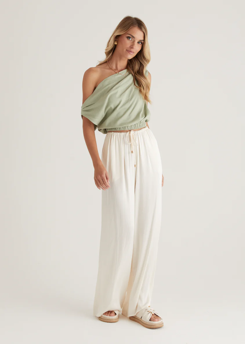 Emiko One Shoulder Crop - Sage
