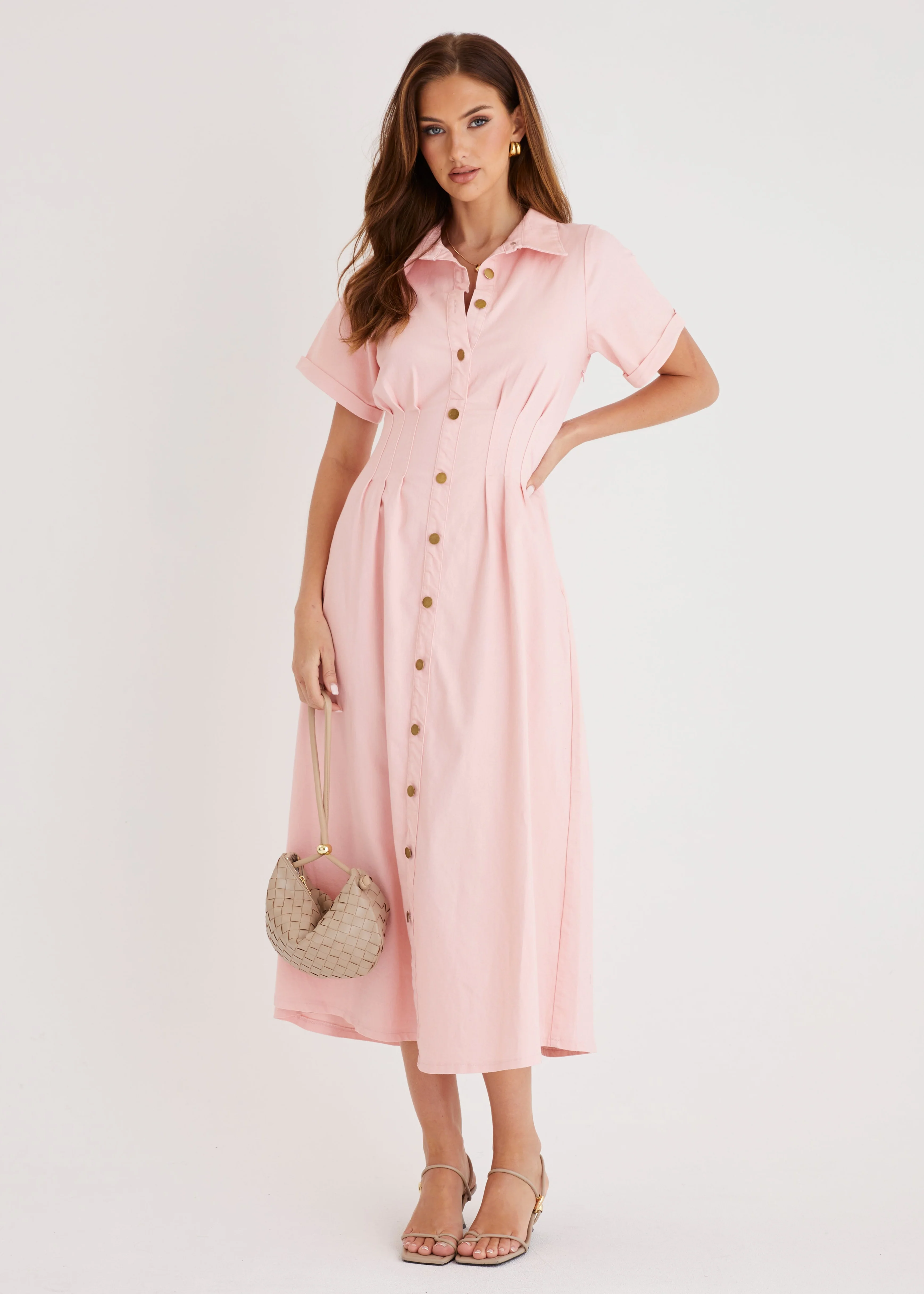 Annika Denim Midi Dress - Pink