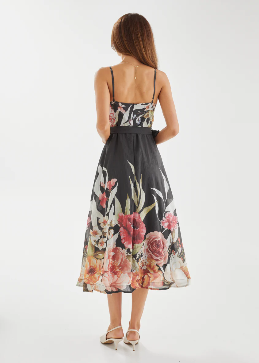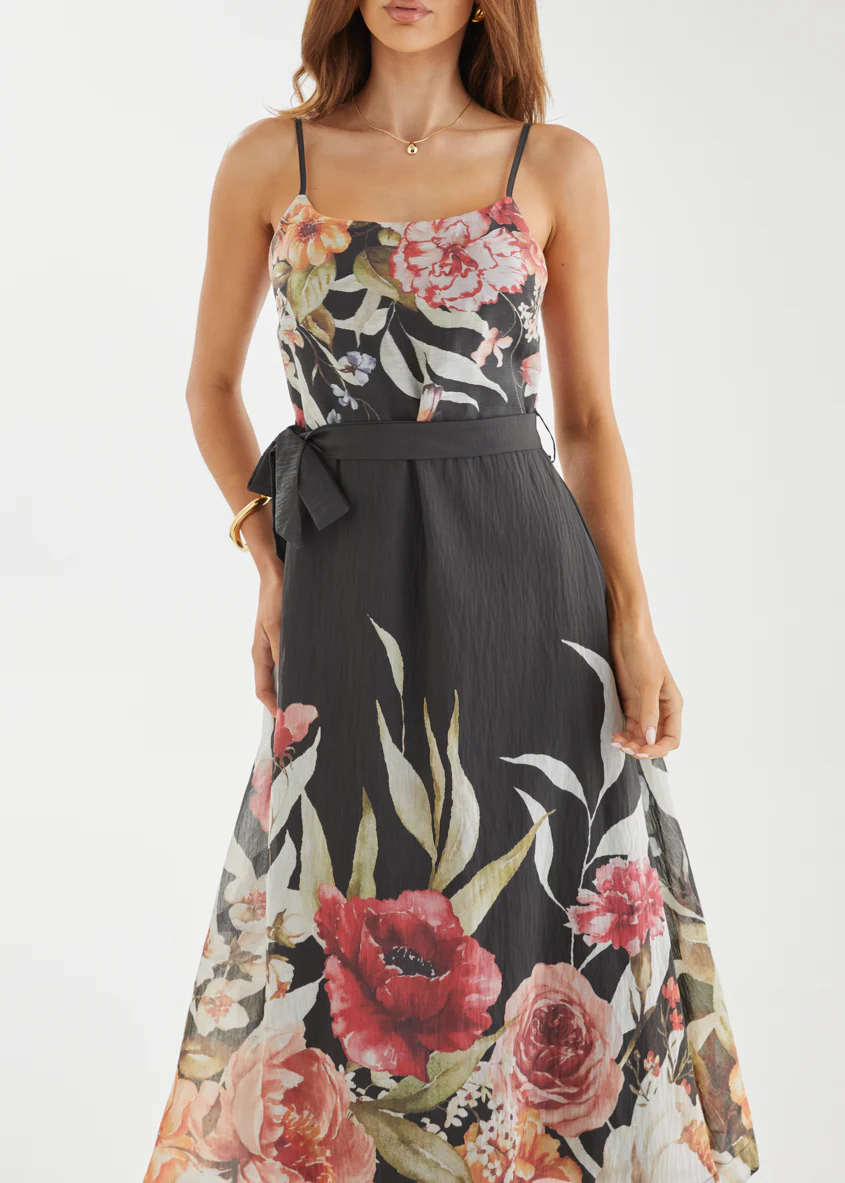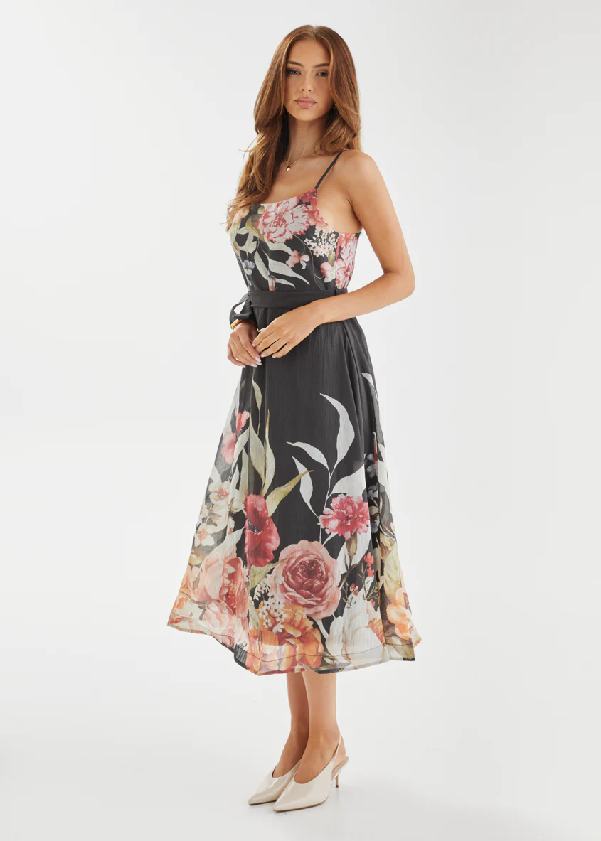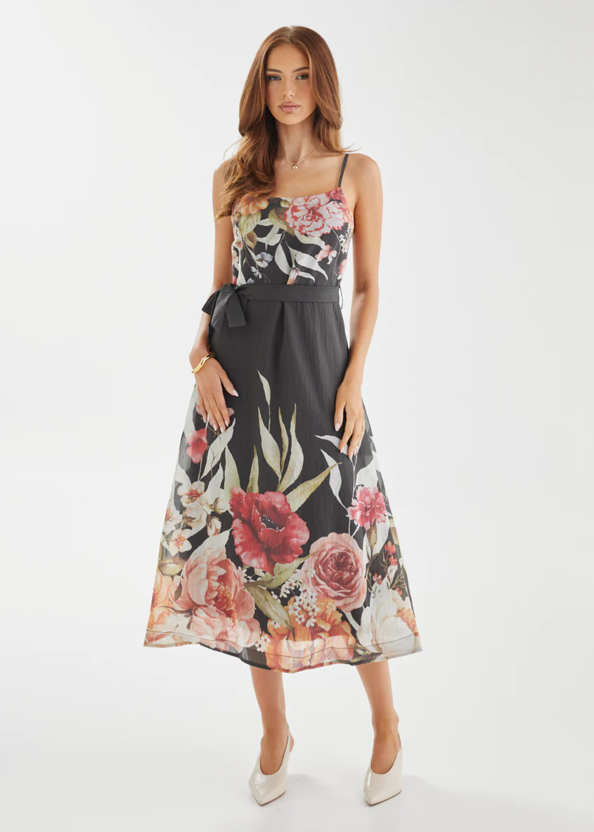 Andrea Midi Dress - Black Garden