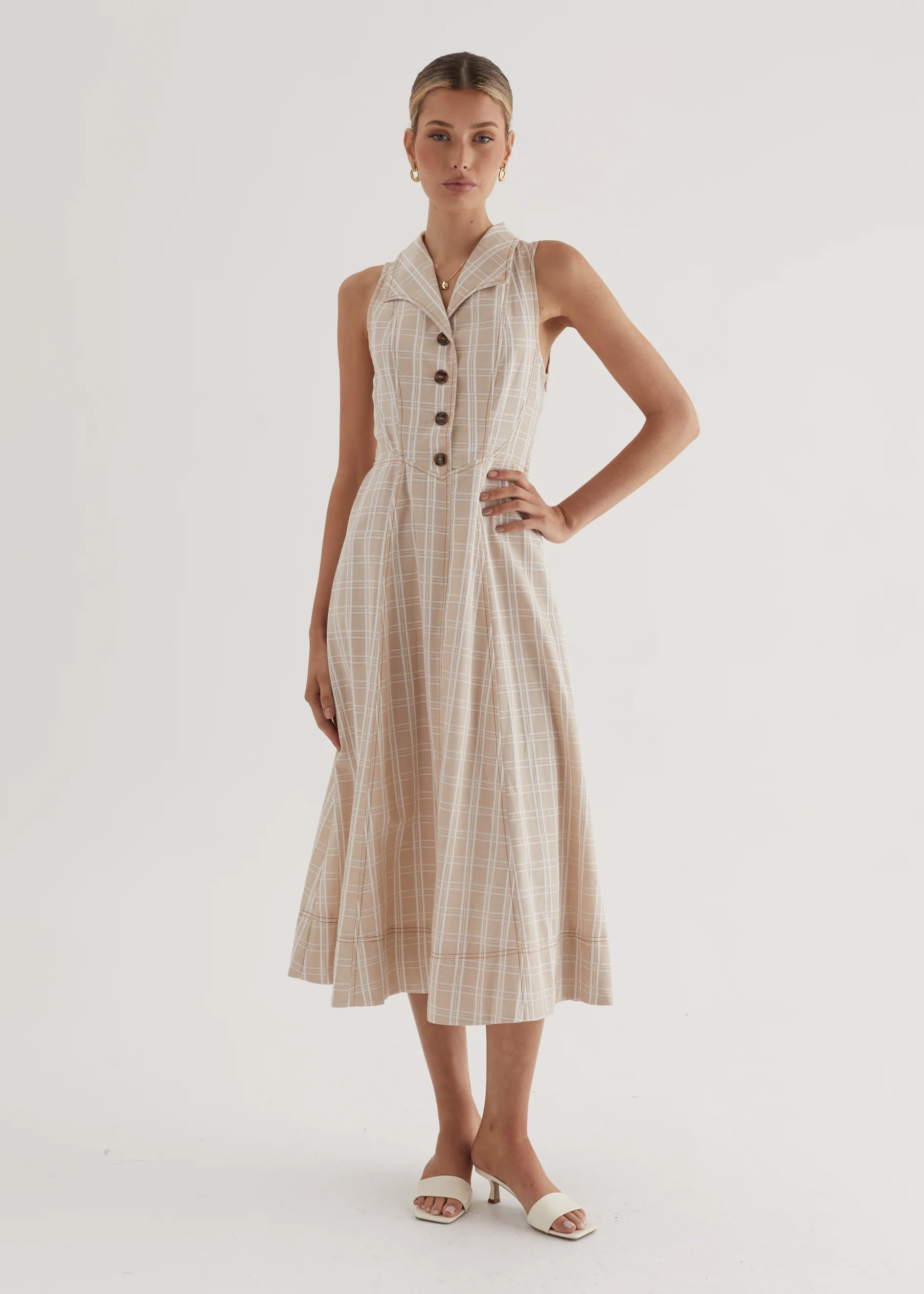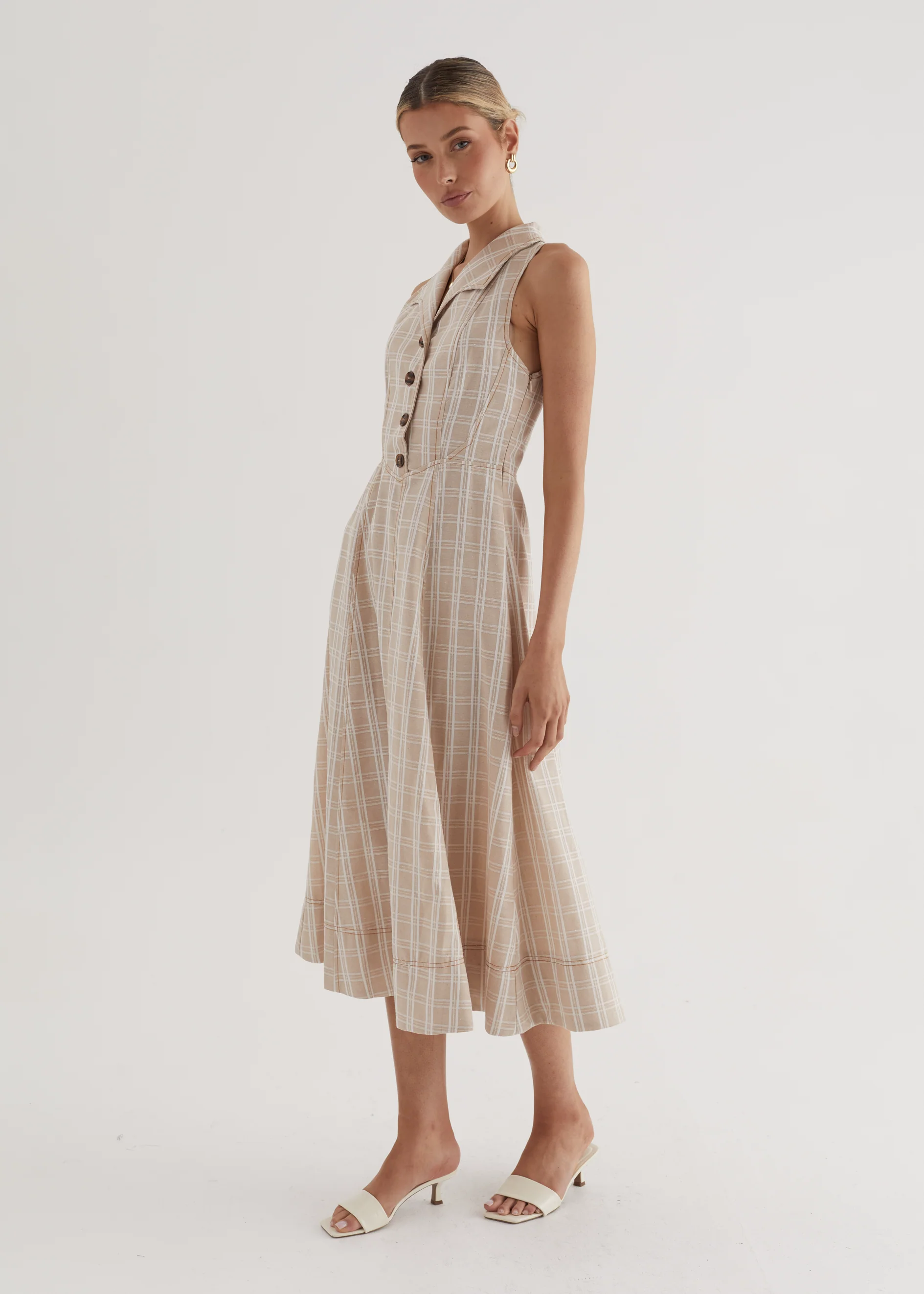 Annie Midi Dress - Beige Check