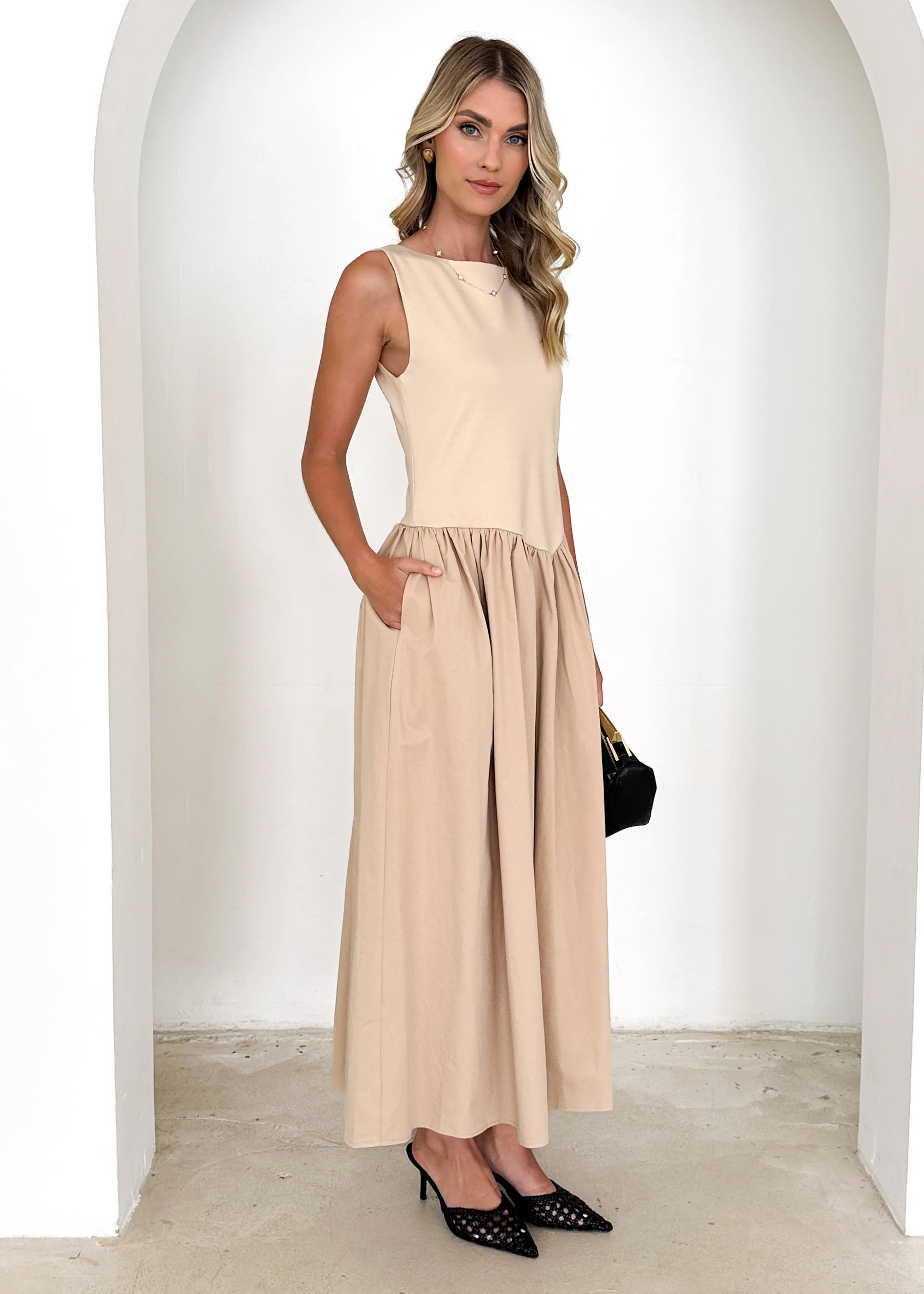 Annaleise Midi Dress - Beige