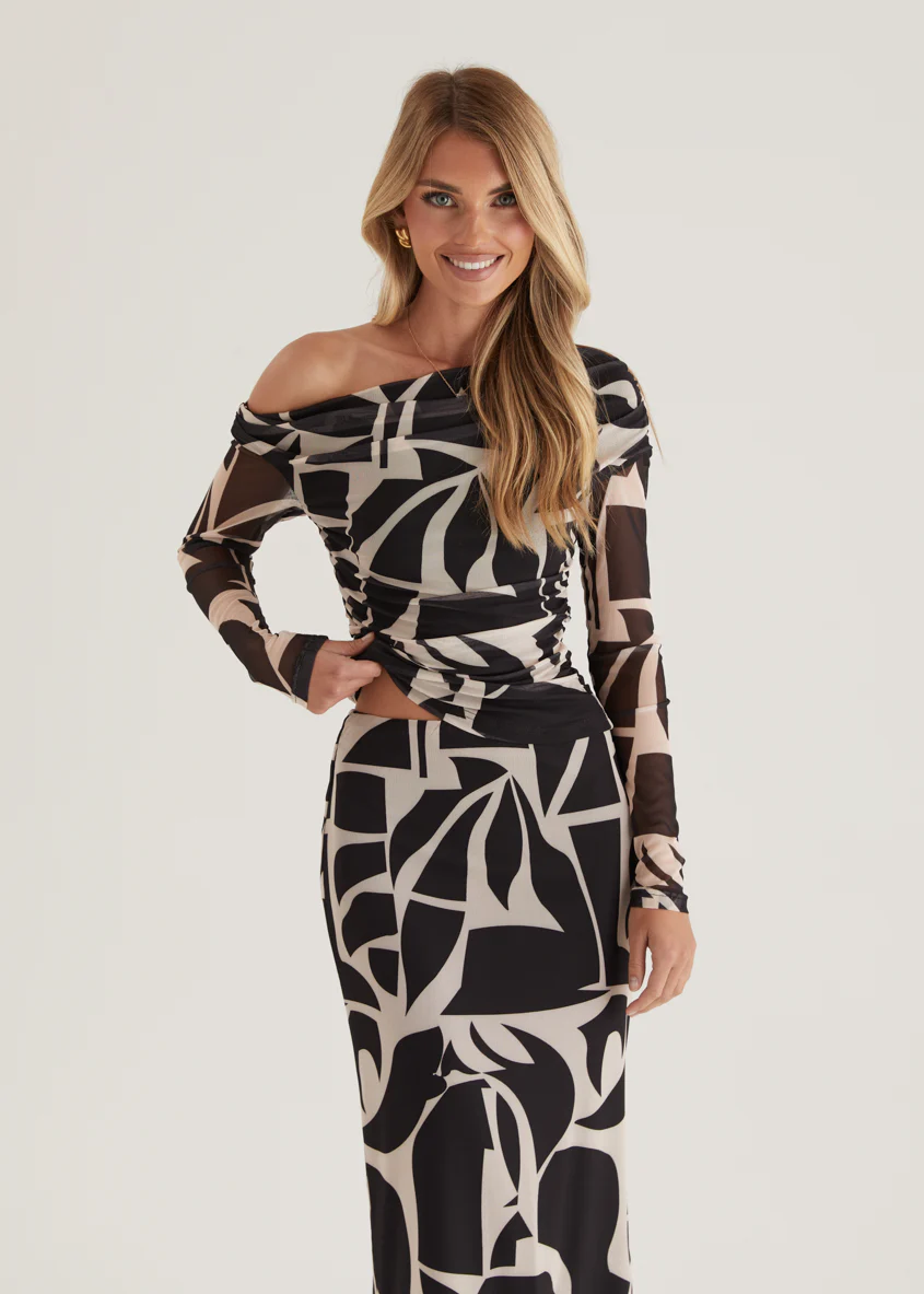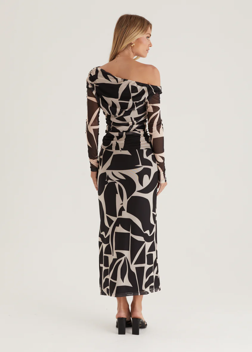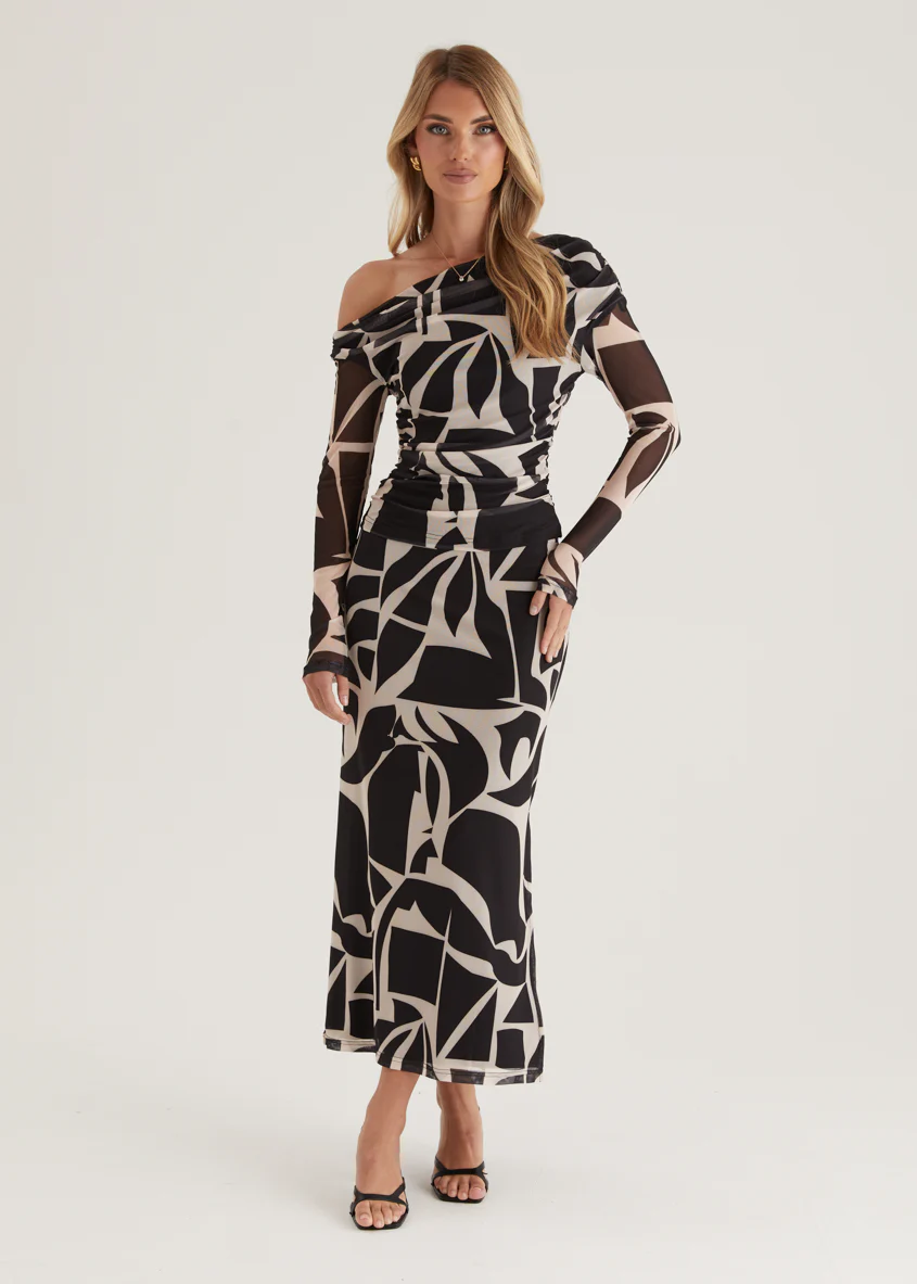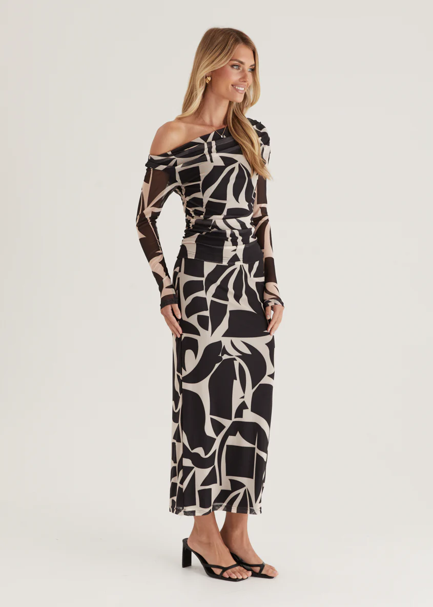 Mimi Mesh Maxi Skirt - Black Abstract