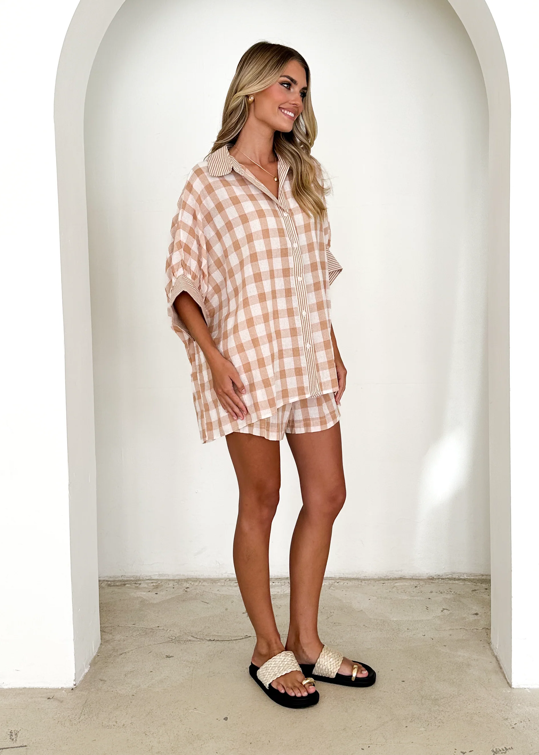 Naomie Shorts - Beige Gingham