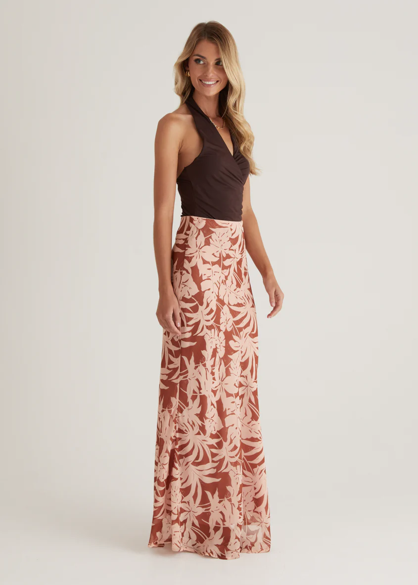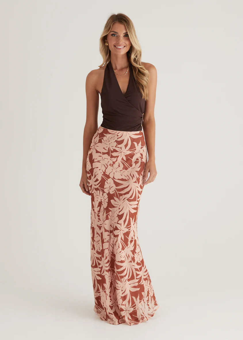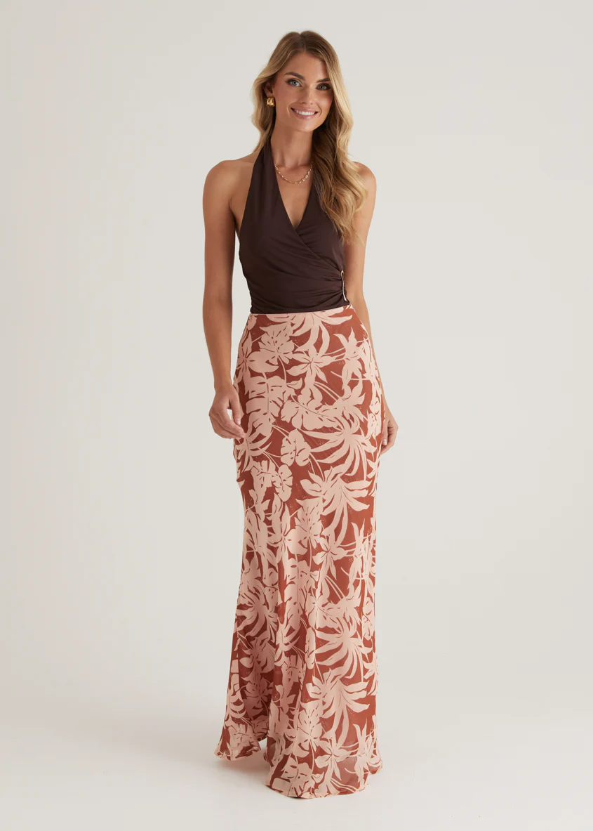 Cartez Maxi Skirt - Bronze Palm