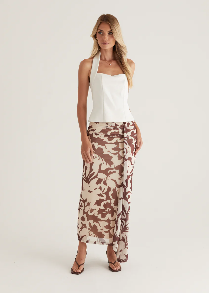Eyso Mesh Maxi Skirt - Choc Flowers