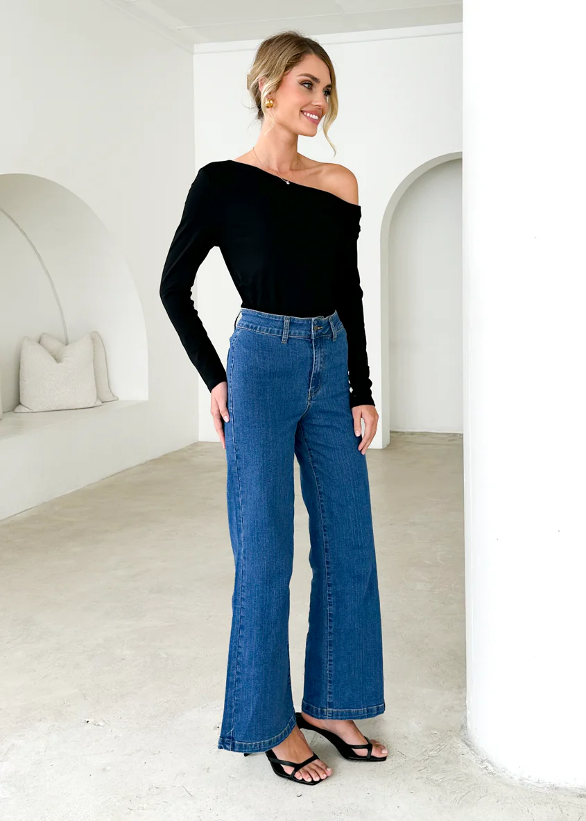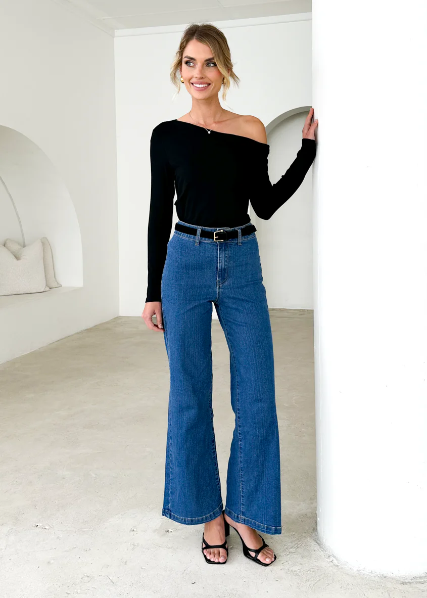 Georgie Stretch Flare Jeans - Mid Blue