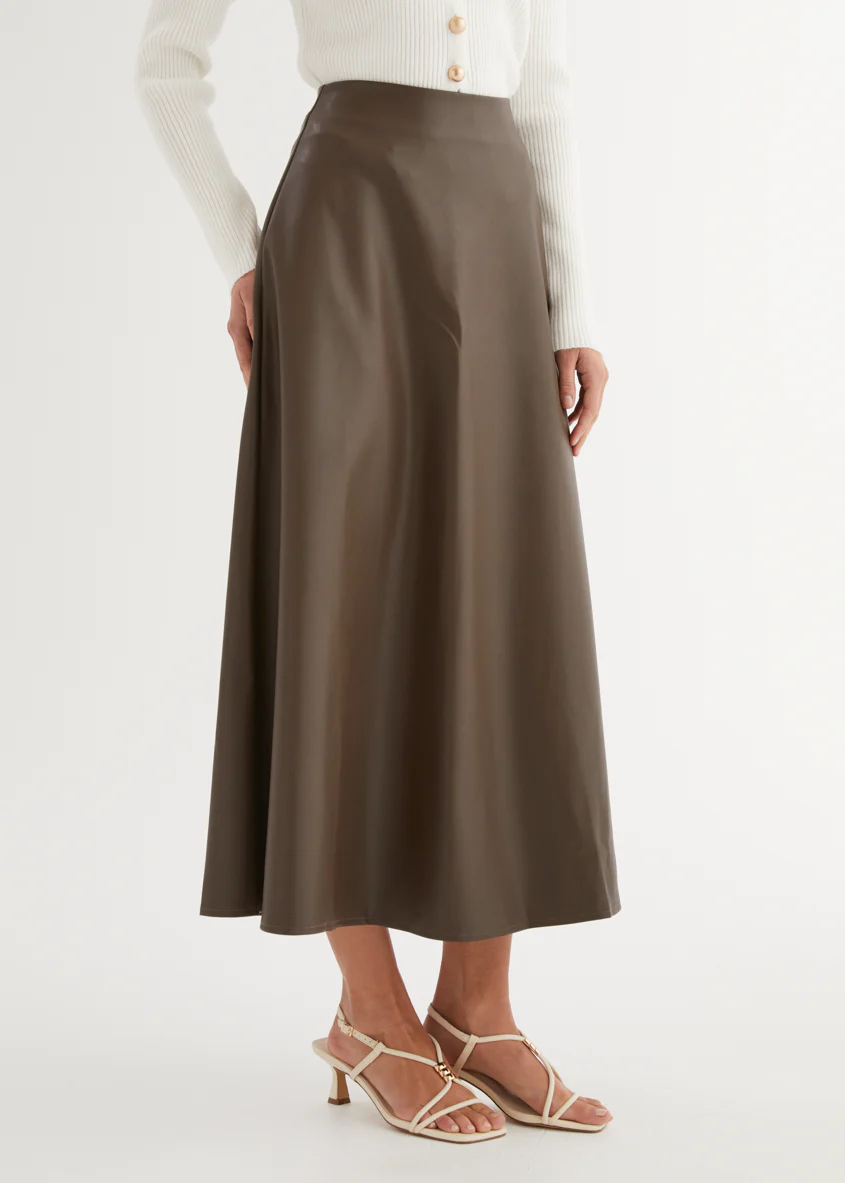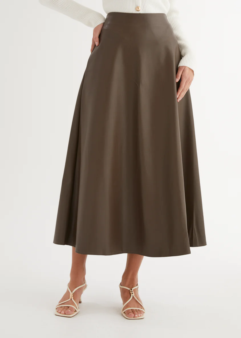 Coltrane PU Midi Skirt - Coffee