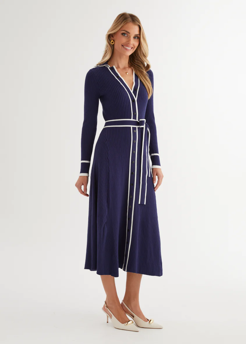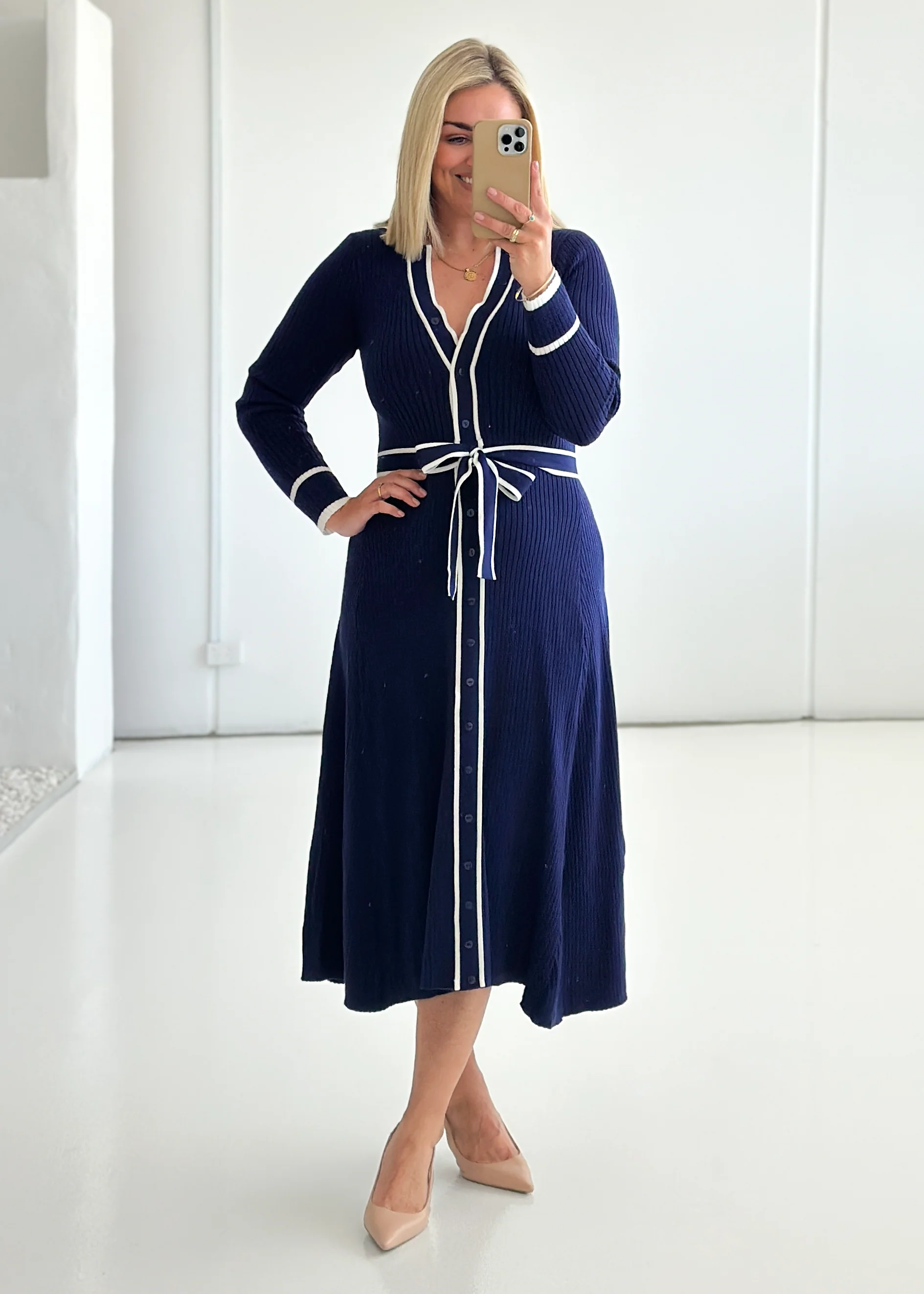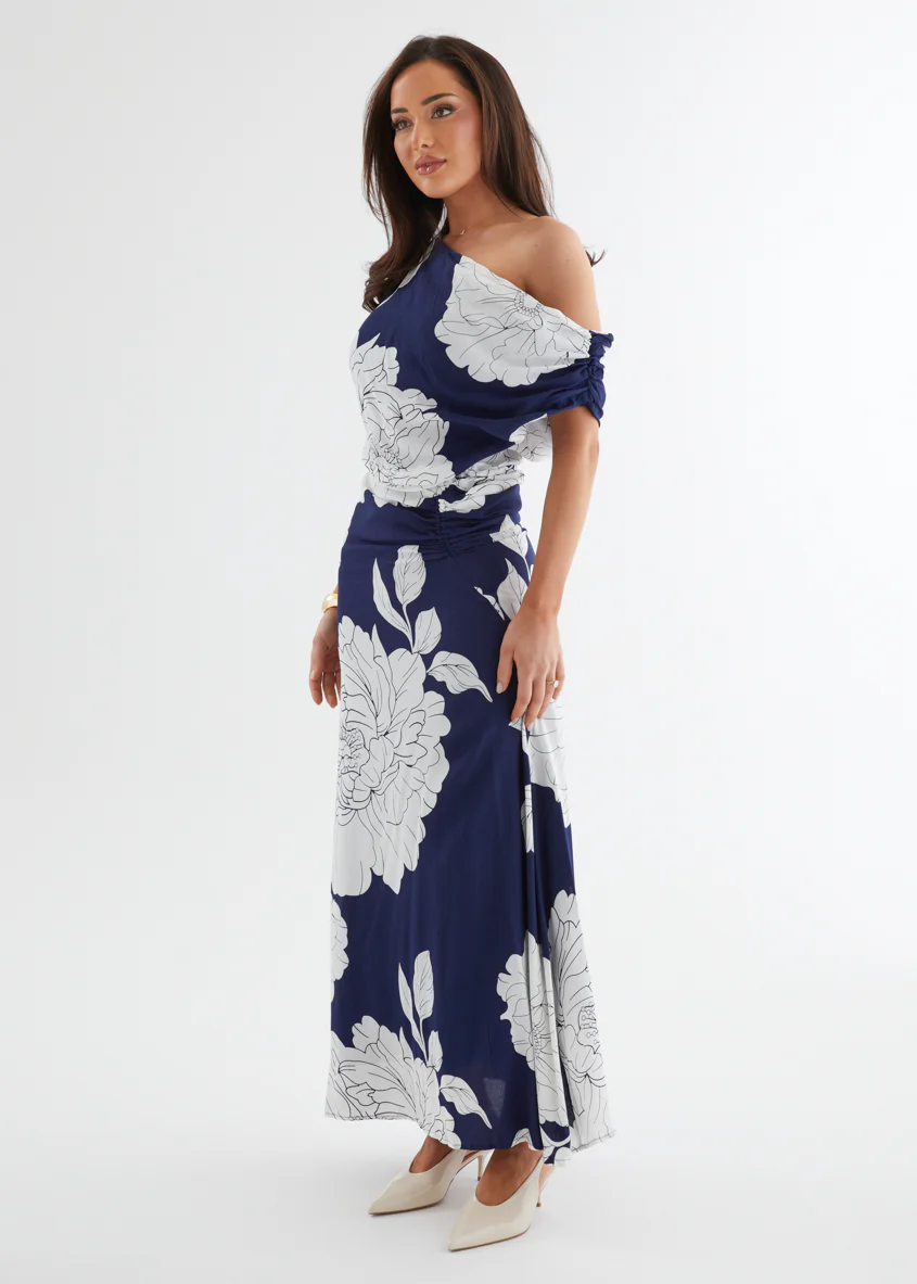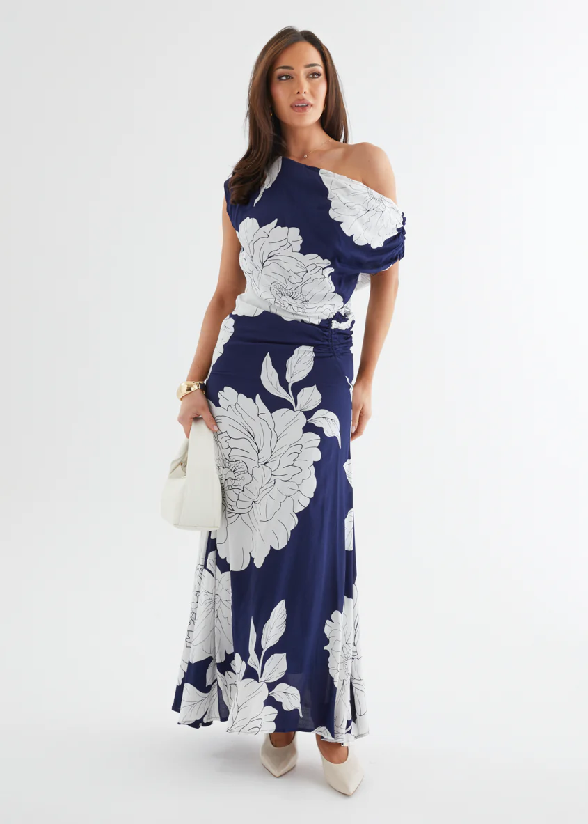Aida Drop Shoulder Maxi Dress - Navy Bloom