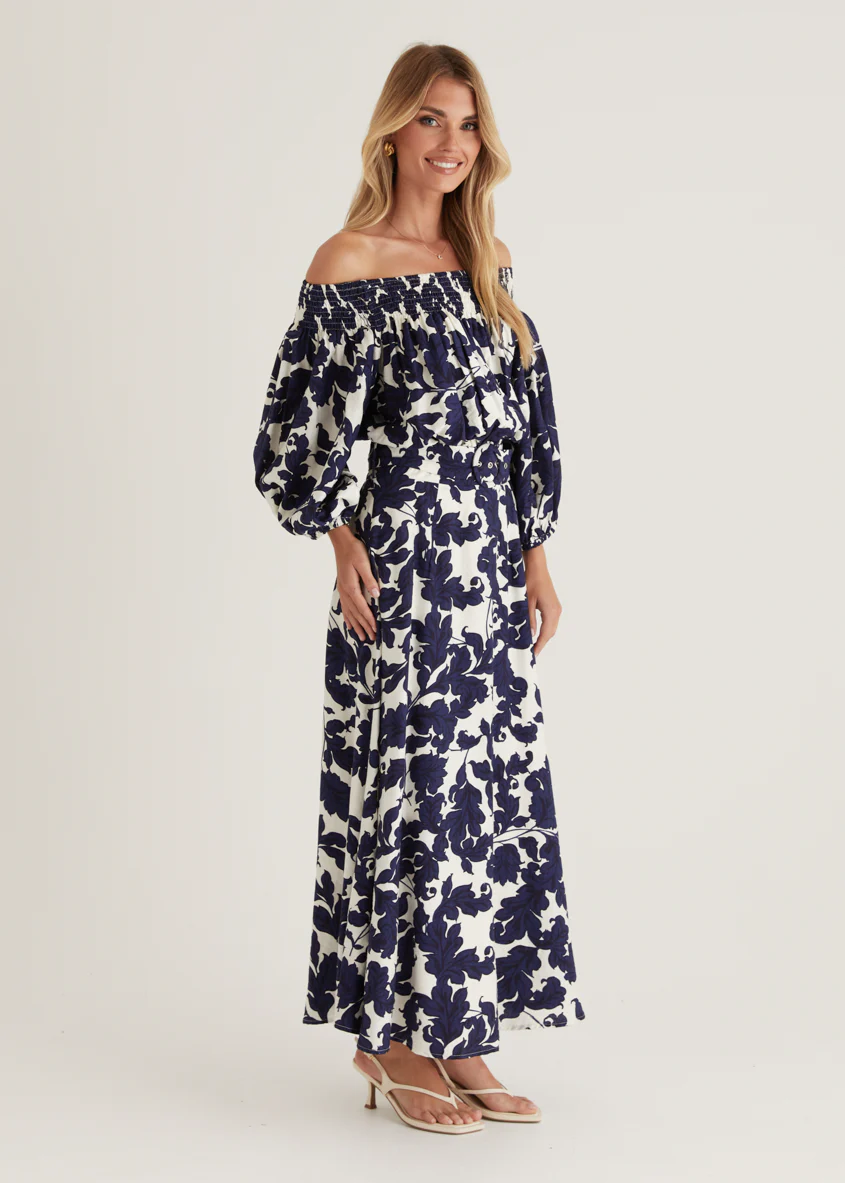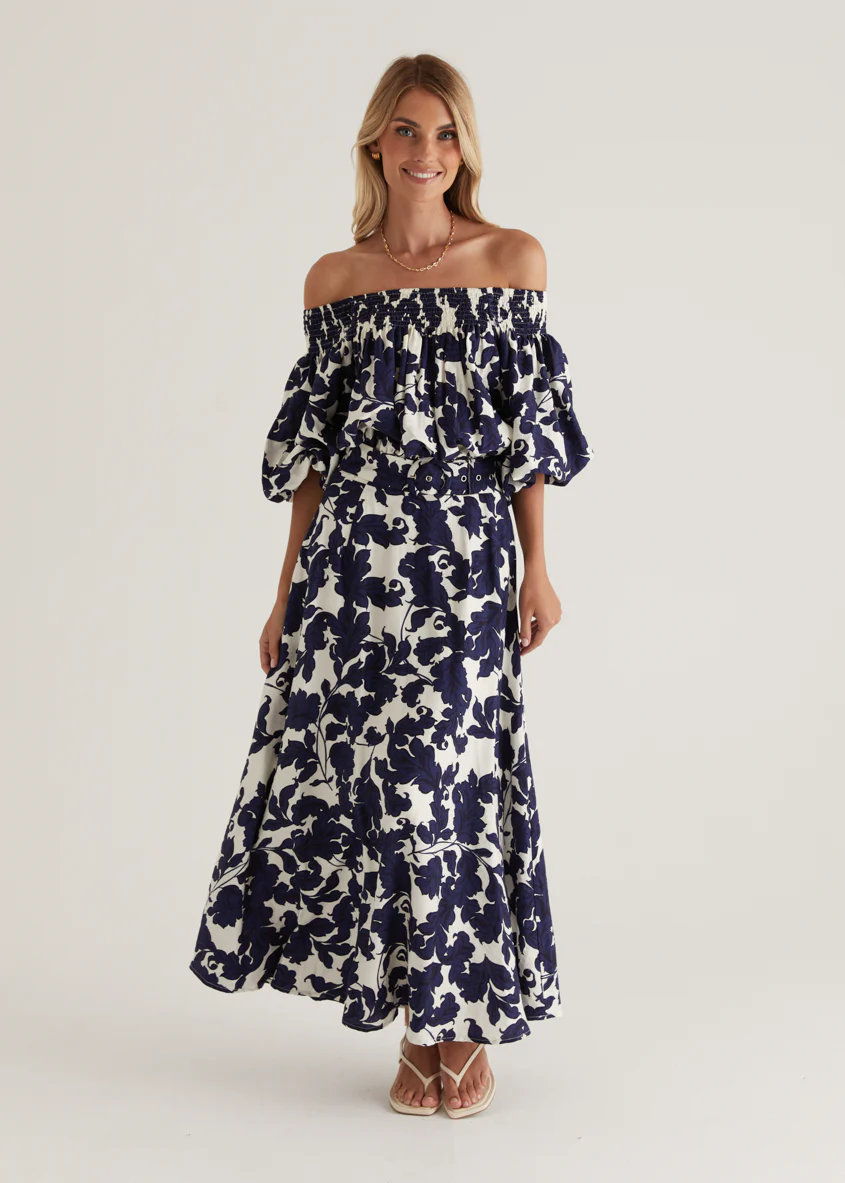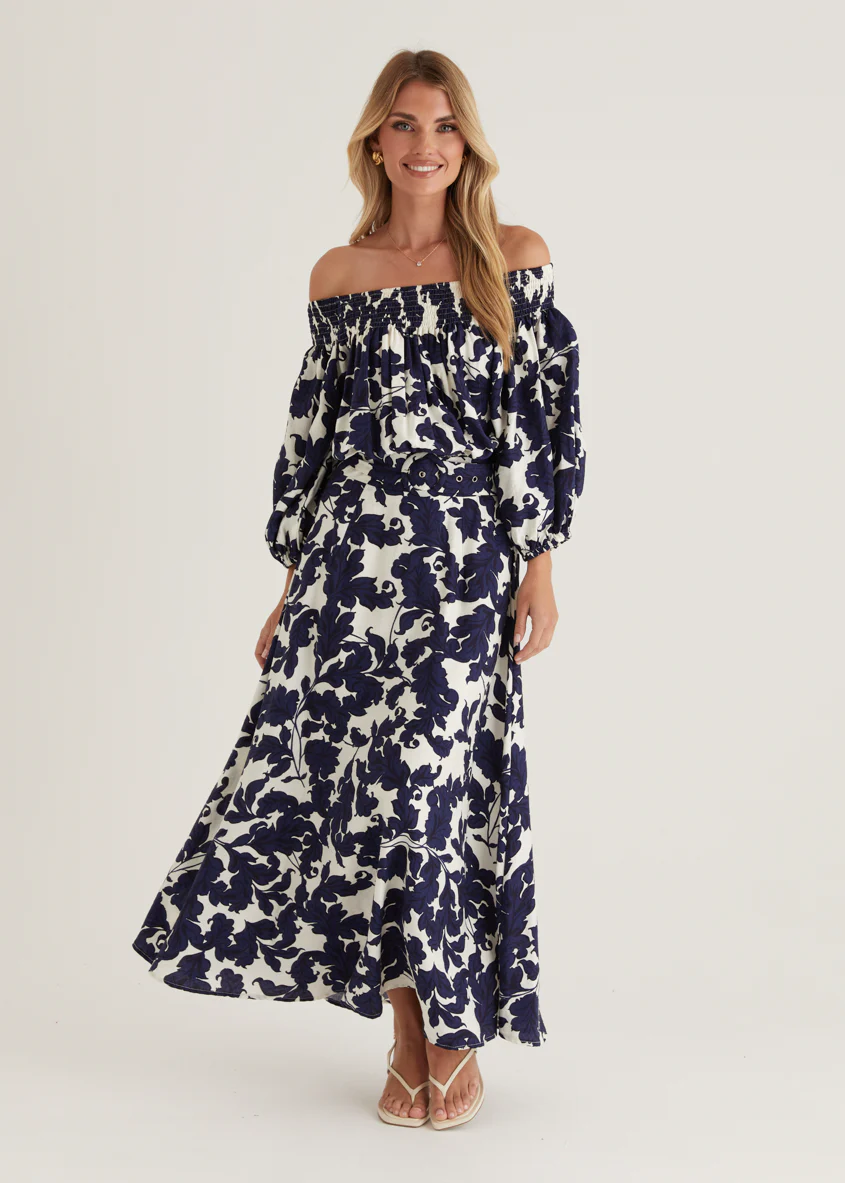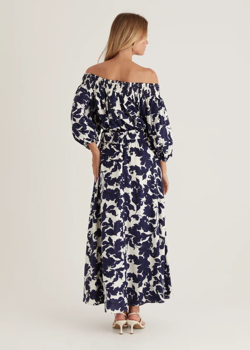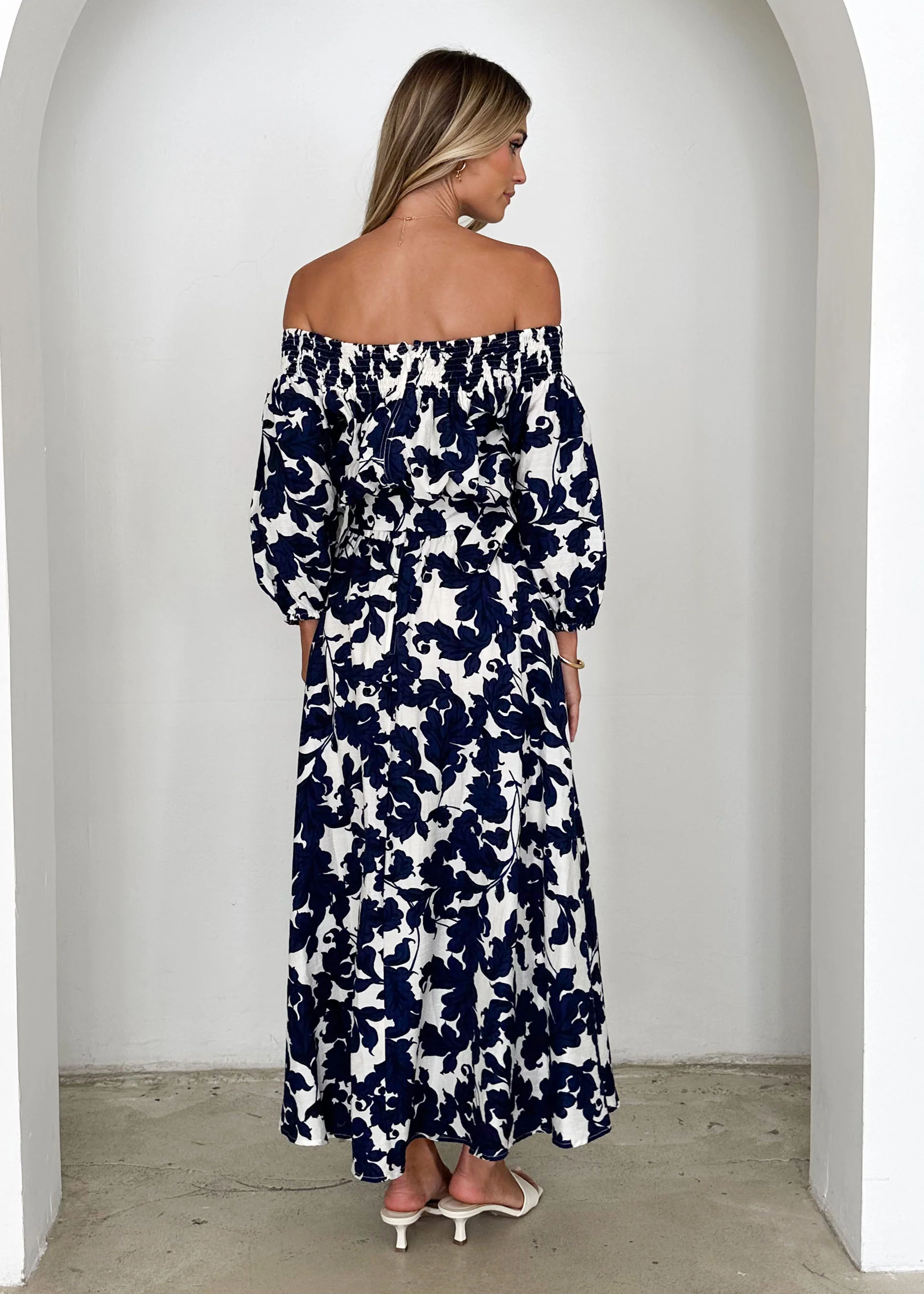 Talu Off Shoulder Midi Dress - Navy Paisley