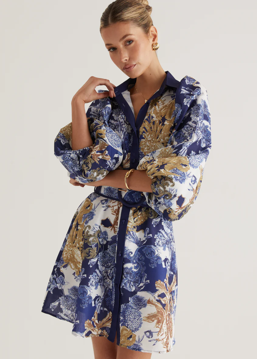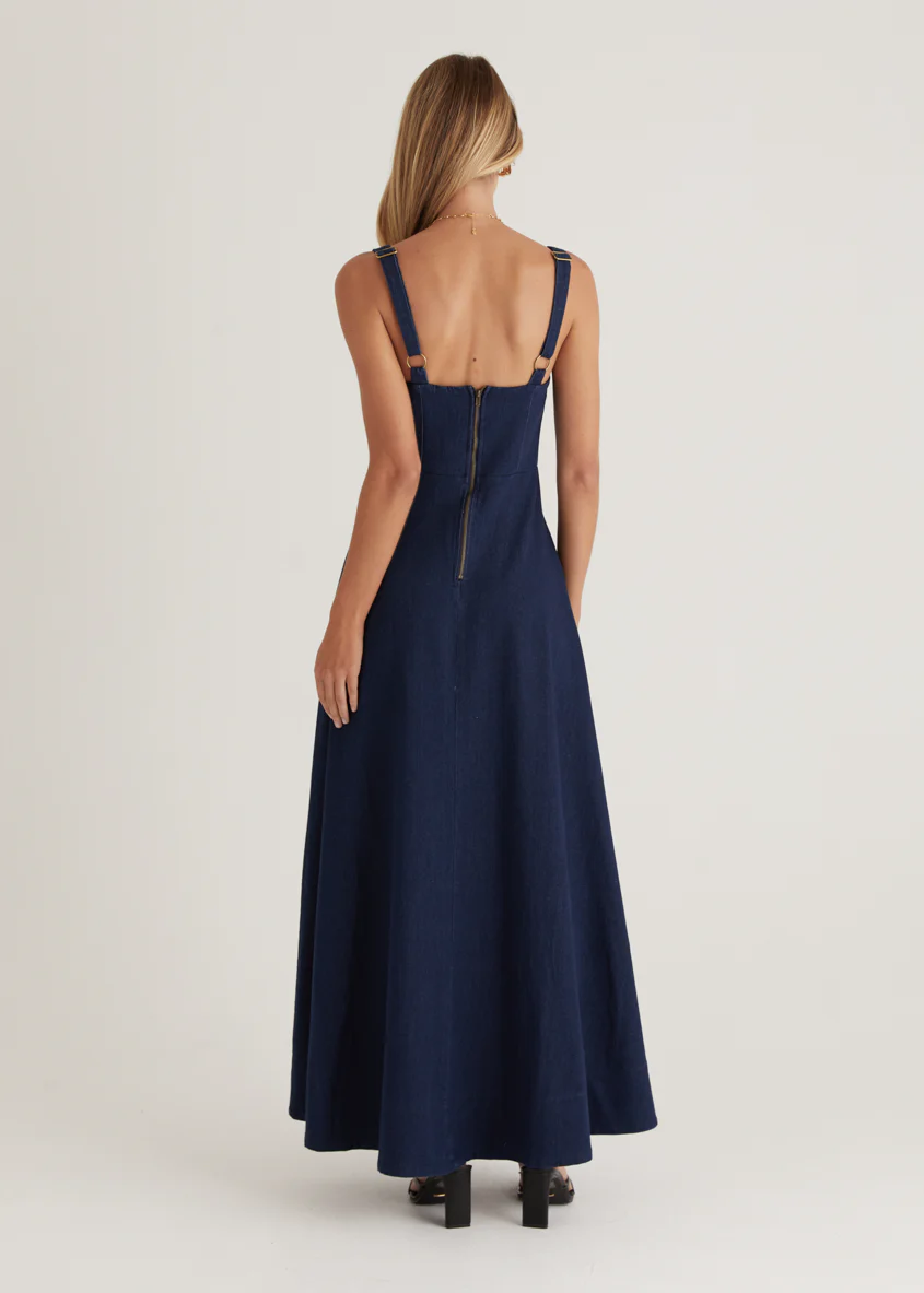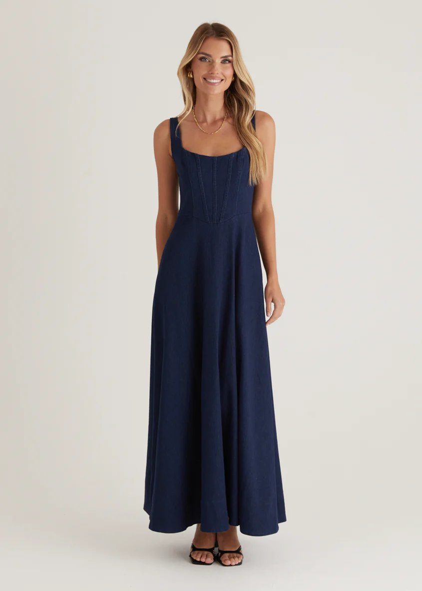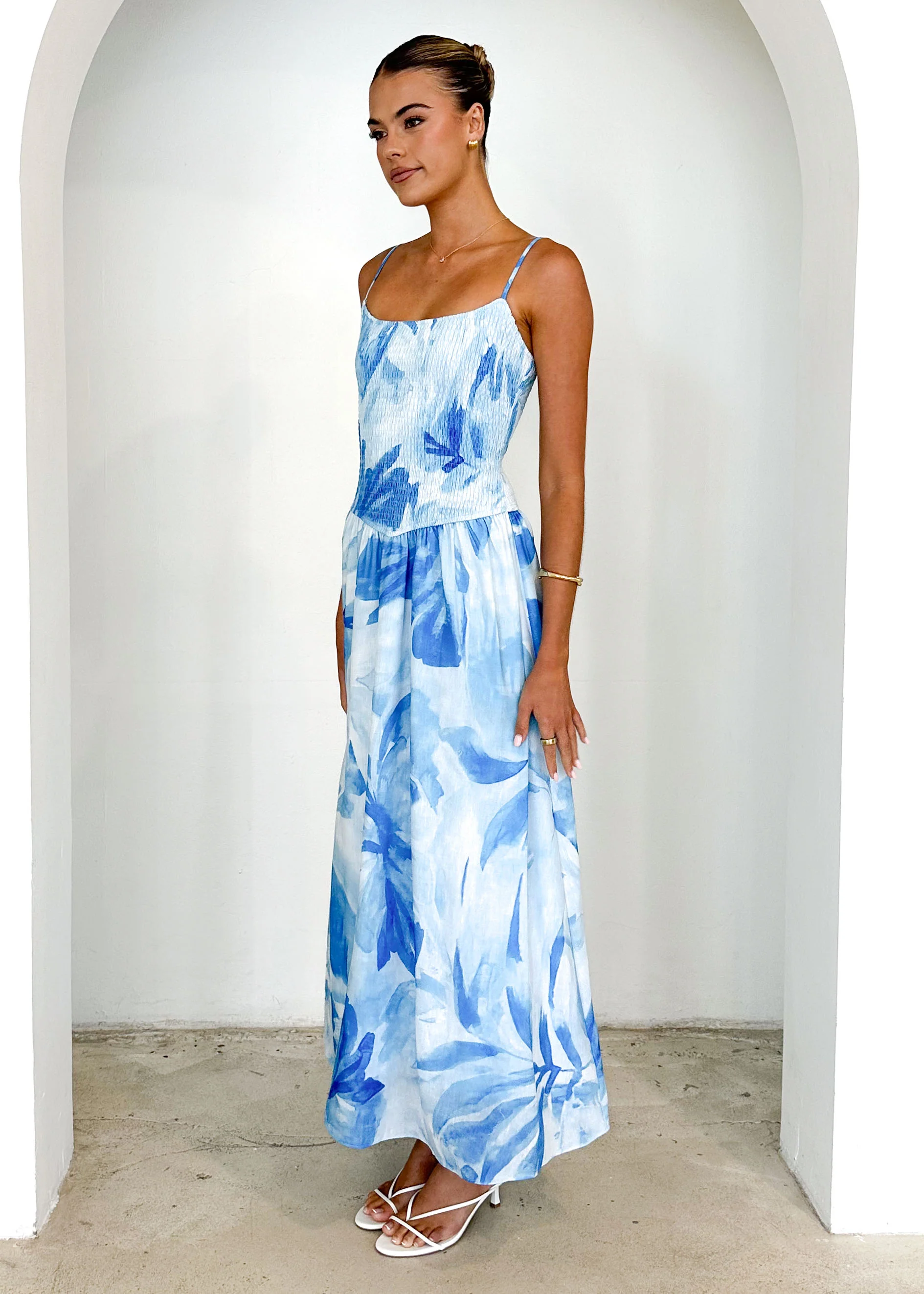 Talu Off Shoulder Midi Dress - Navy Paisley