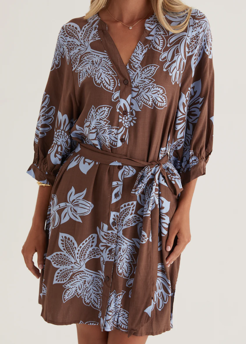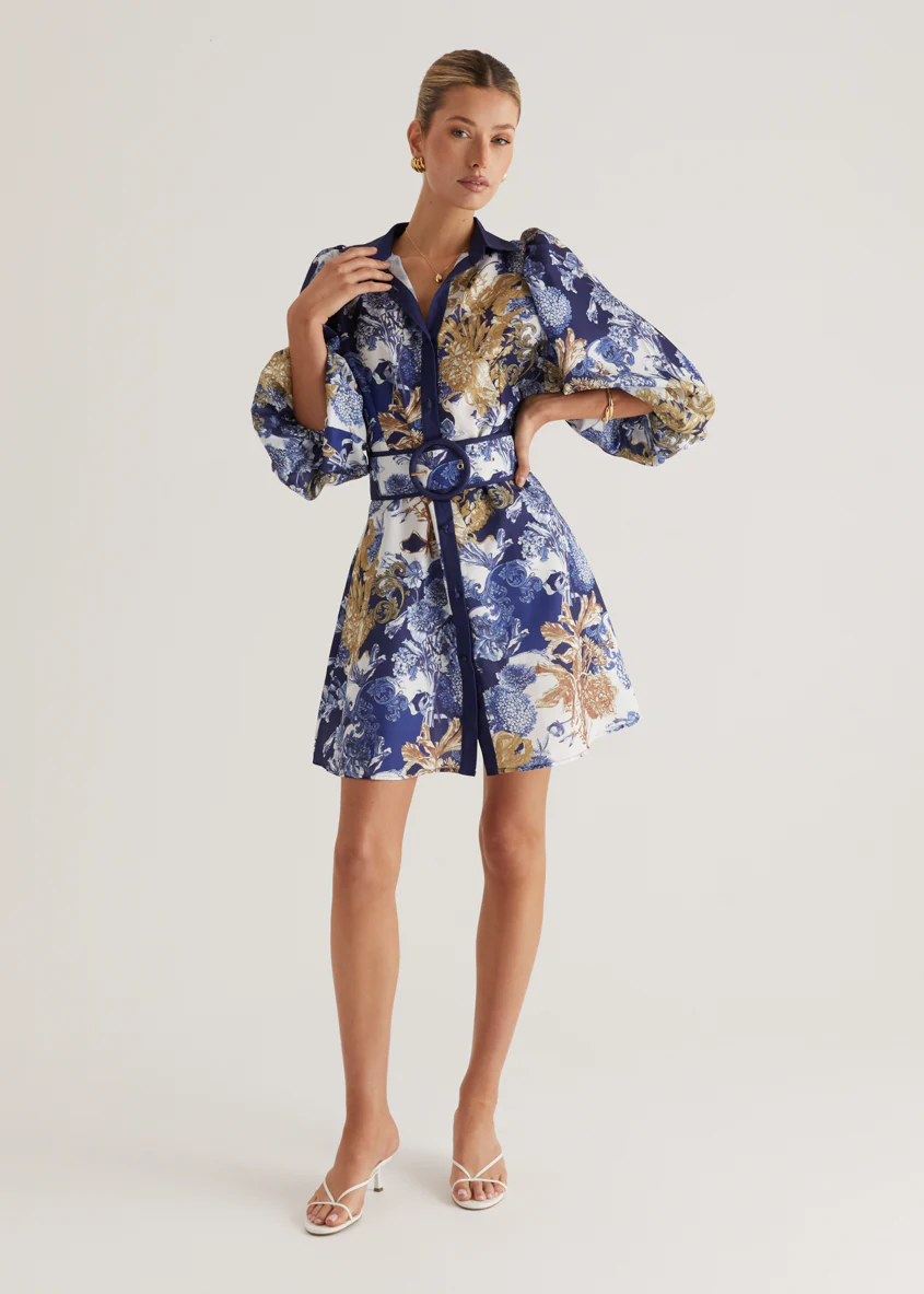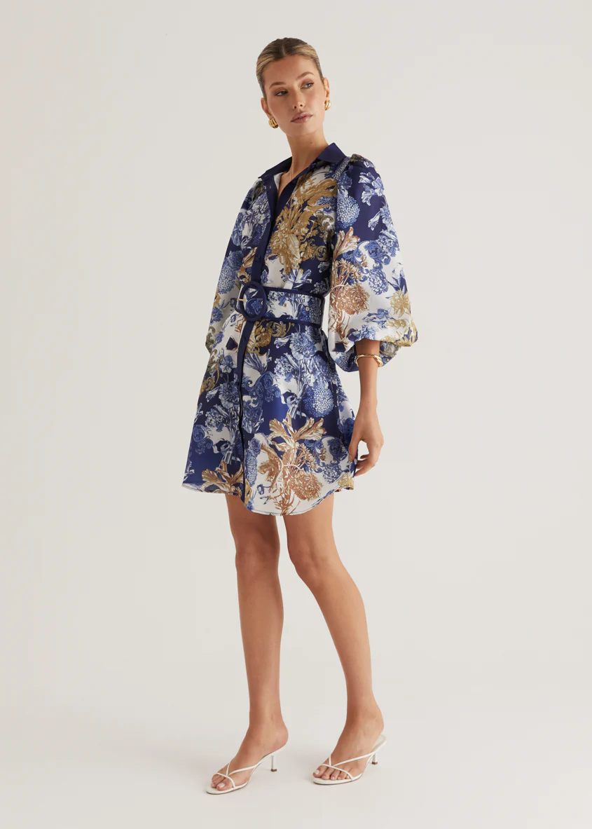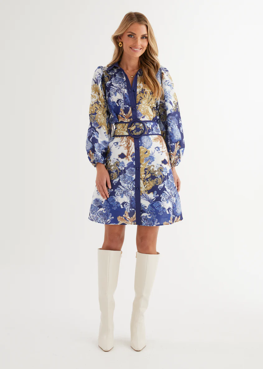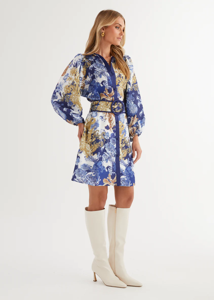 Talu Off Shoulder Midi Dress - Navy Paisley