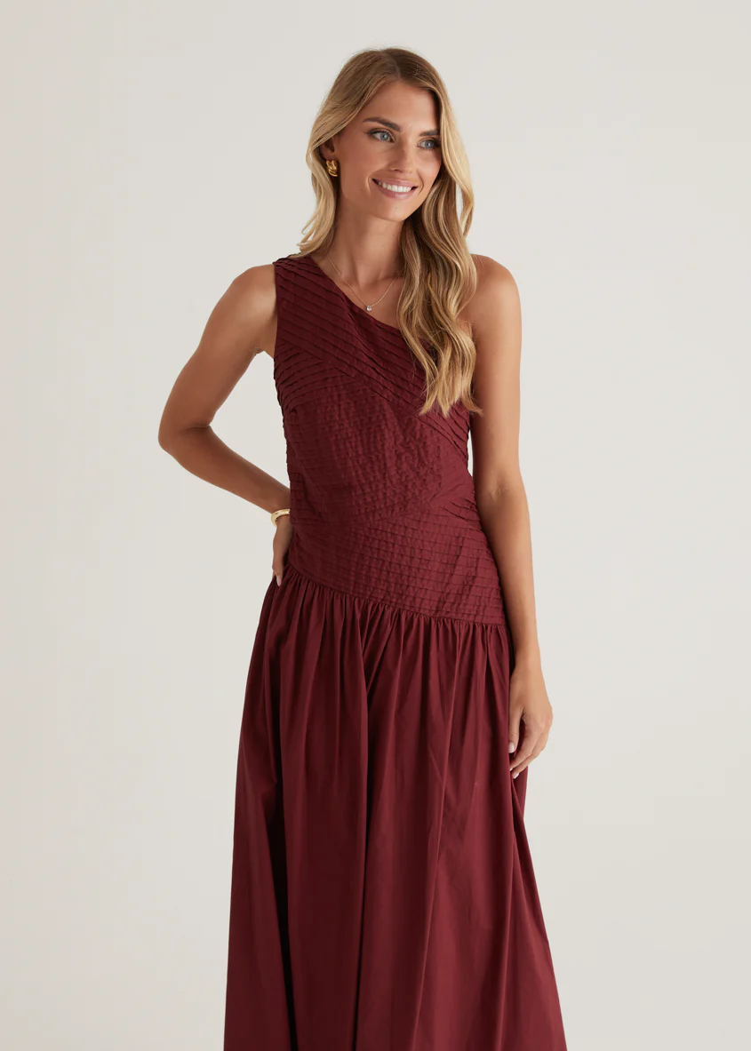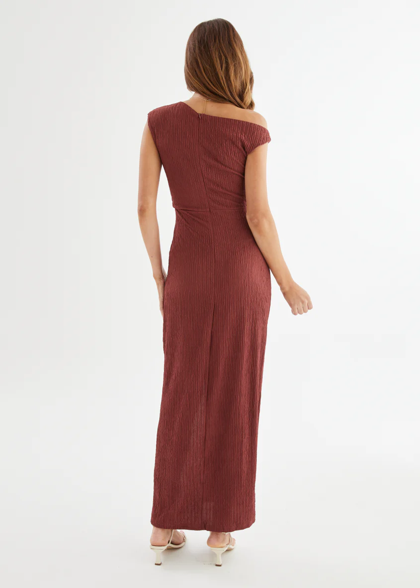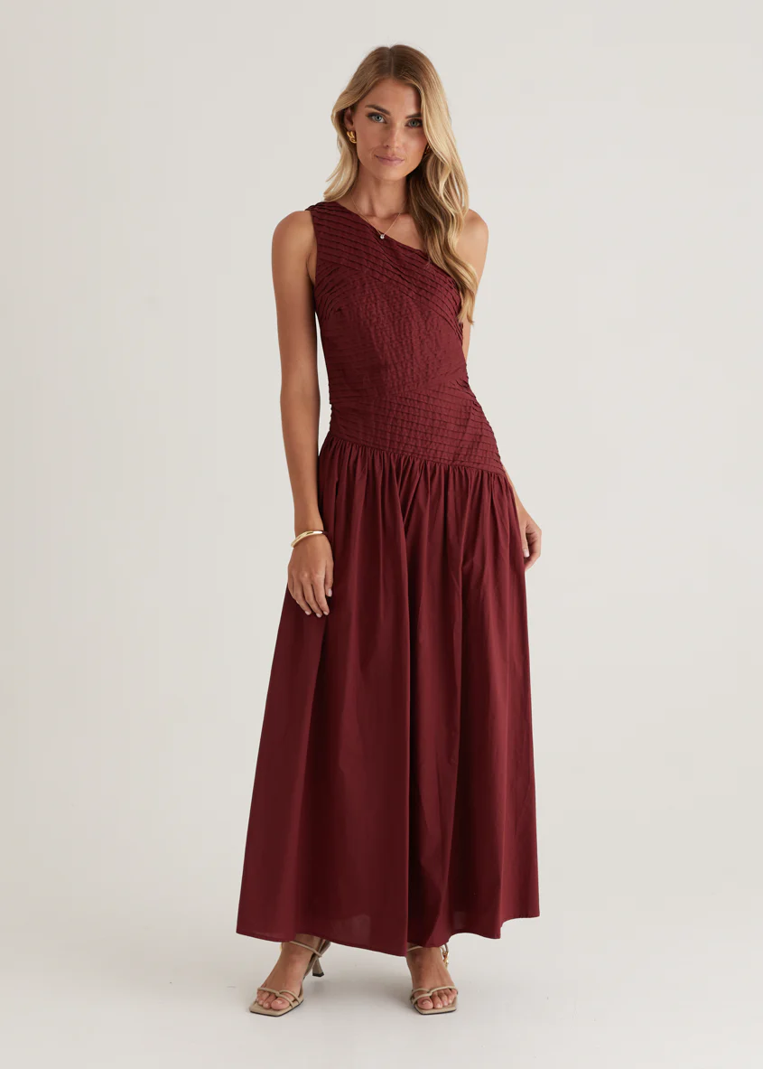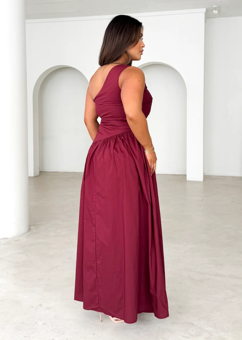 Tazzy One Shoulder Maxi Dress - Burgundy