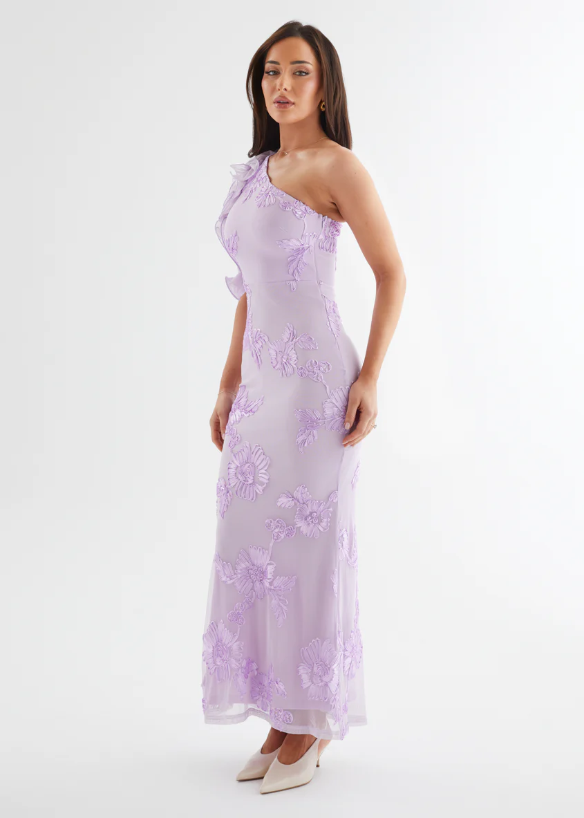 Taysia One Shoulder Mesh Maxi Dress - Lilac
