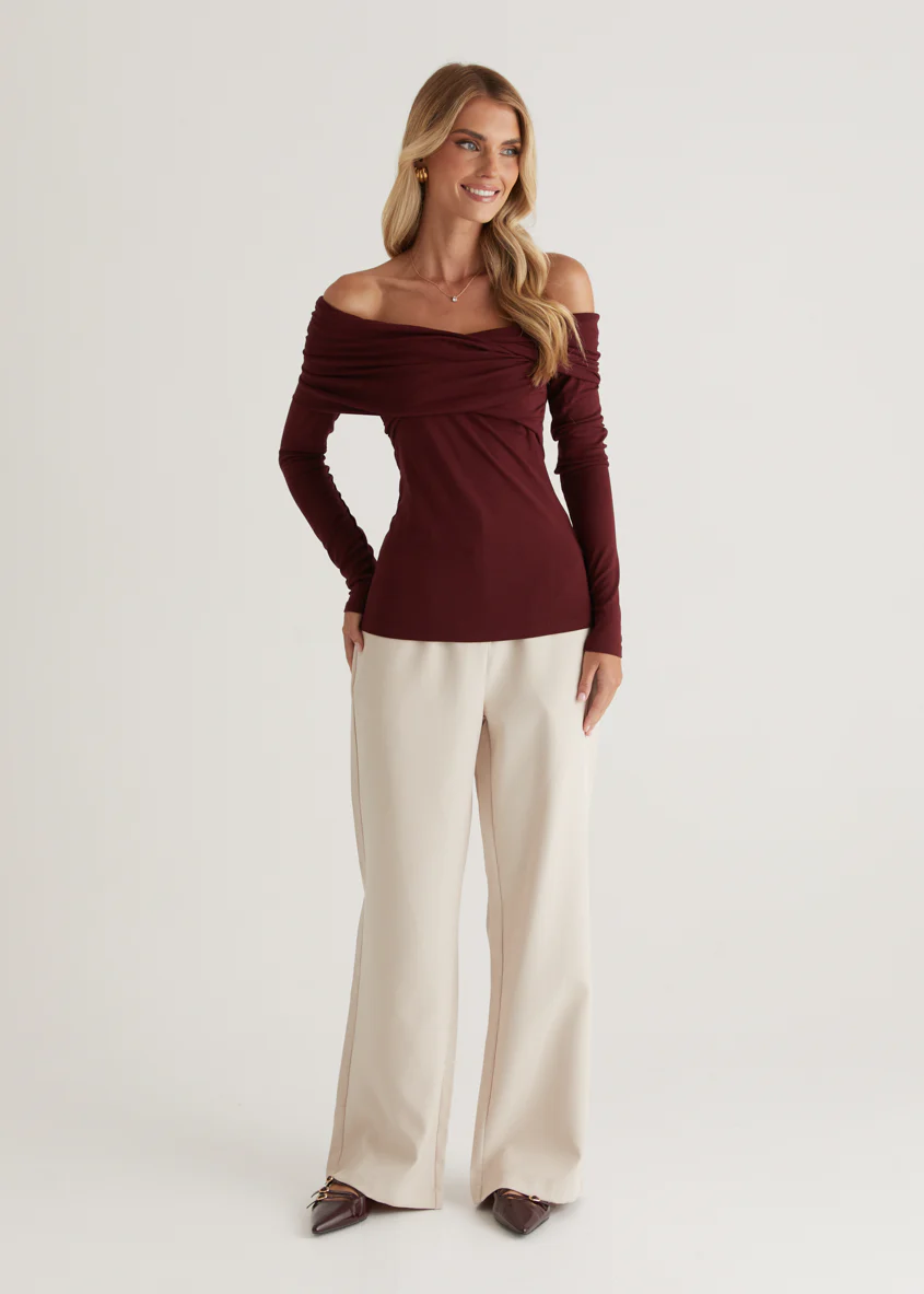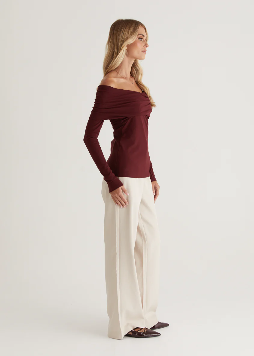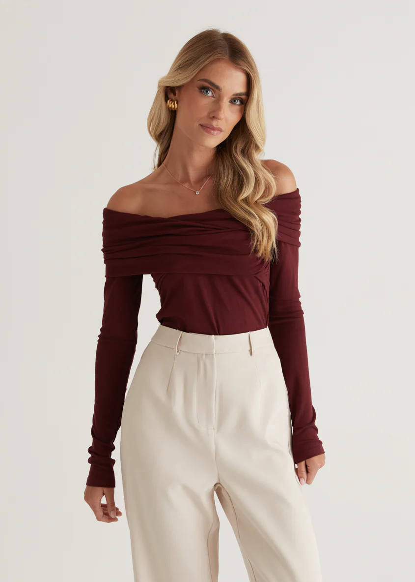 Rayz Off Shoulder Top - Mahogany