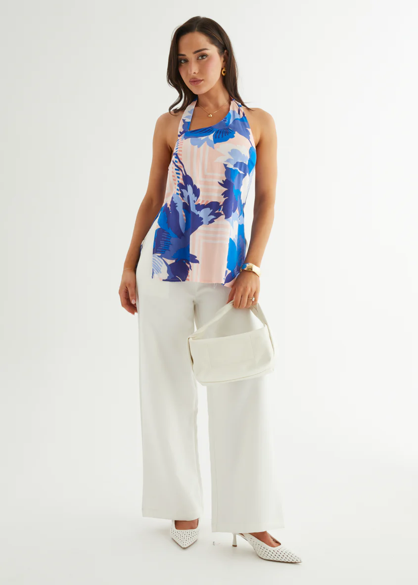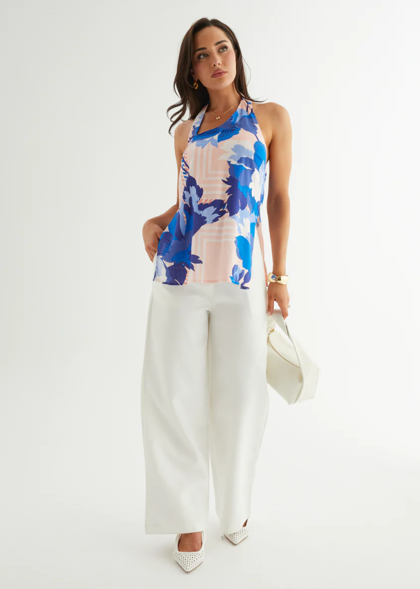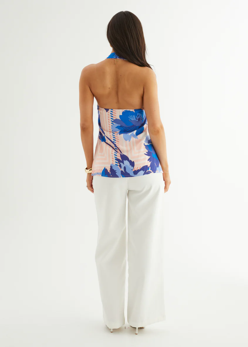 Selene Halter Top - Sapphire Blossom