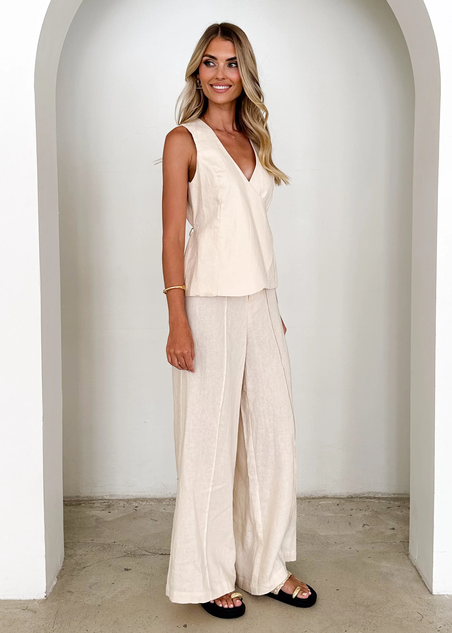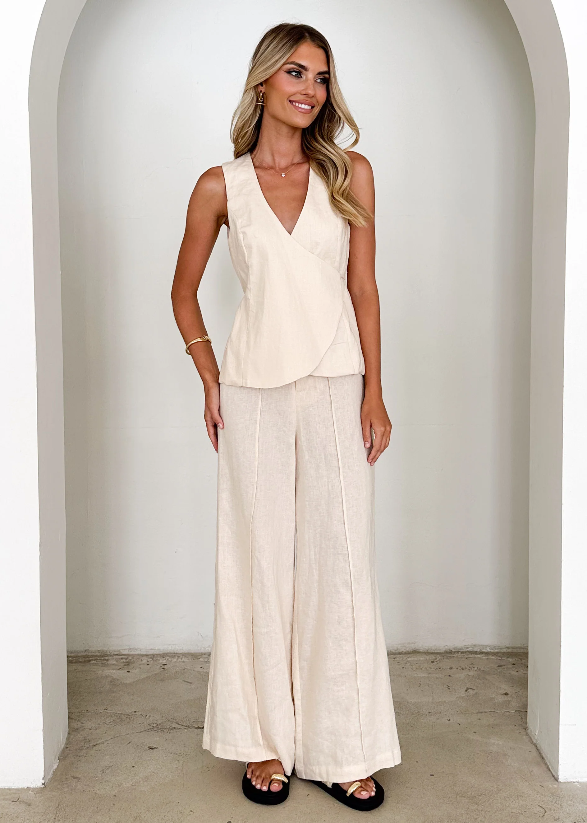 Riva Linen Top - Cream