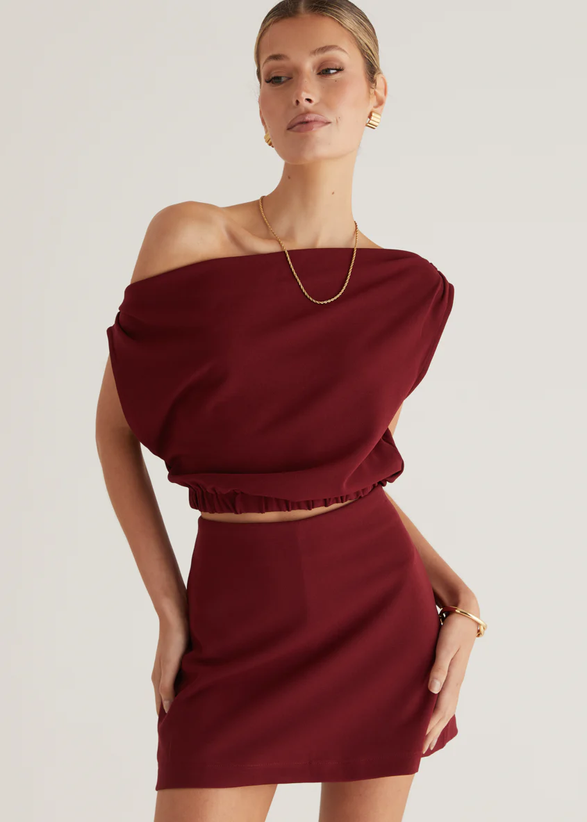 Priya Drop Shoulder Crop - Wine